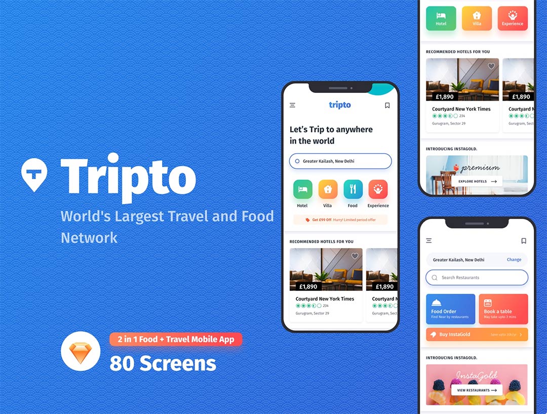 80页高品质的旅游和美食预订app UI工具包sketch格式