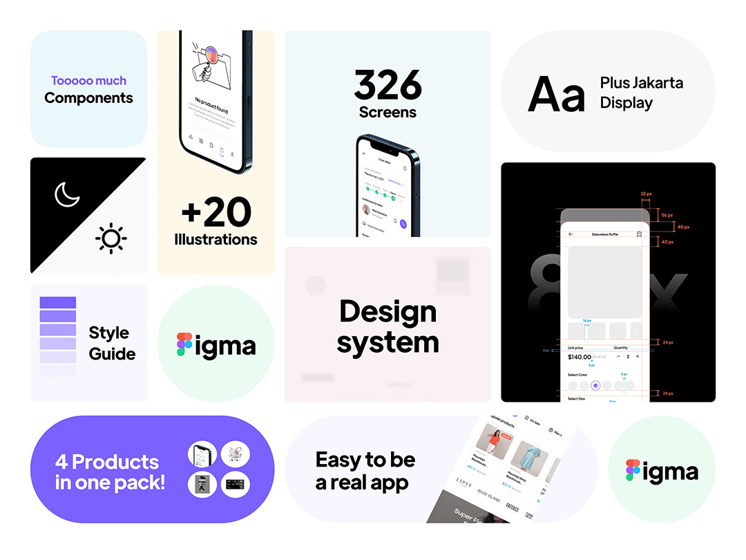 明暗共320页高级电子商务UI工具包figma源文件