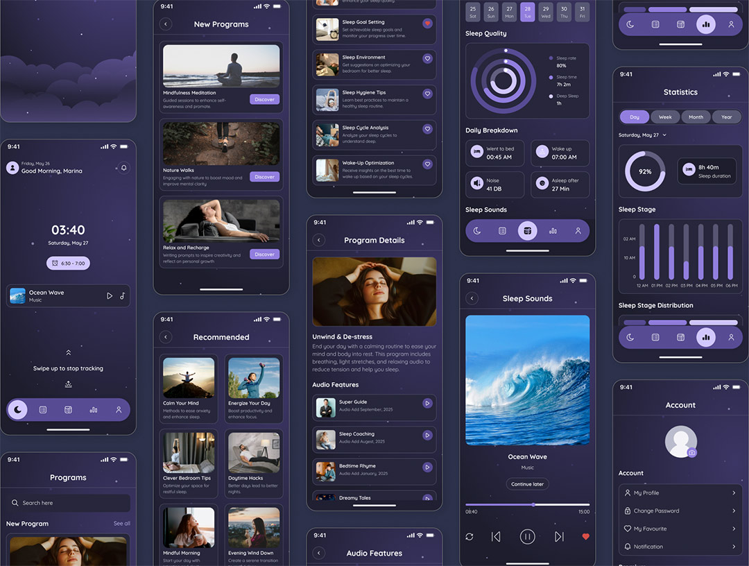 32页睡眠、冥想和放松APP设计 UI 套件figma格式
