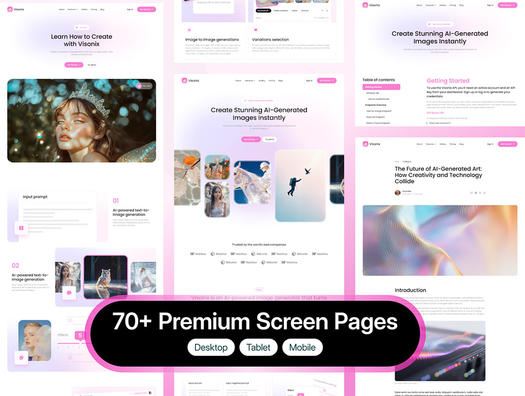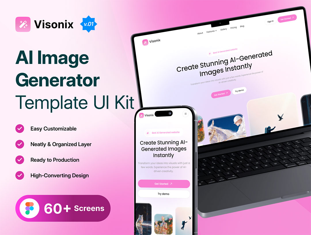 60页响应式三端AI图像生成网站UI设计figma格式(含电脑端原型)