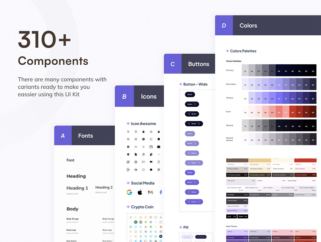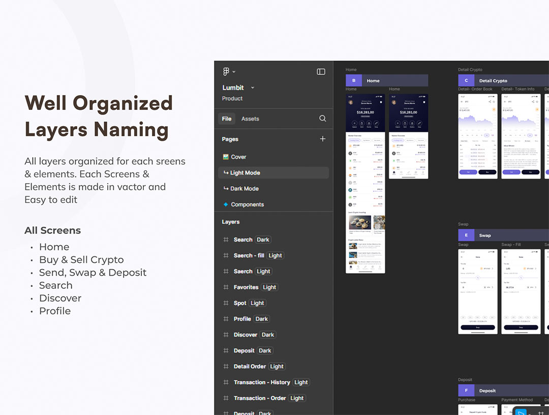 明暗共100页加密货币钱包app界面设计figma格式