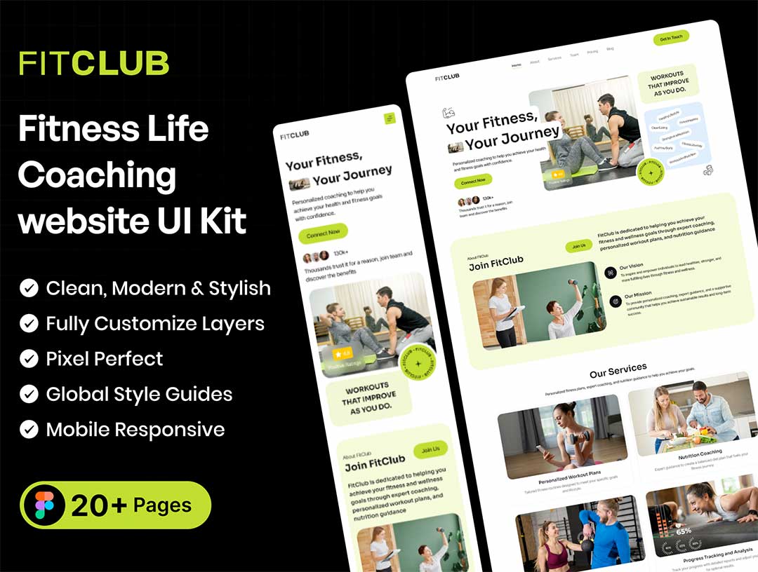 20页响应式健身生活教练网站UI界面设计figma源文件