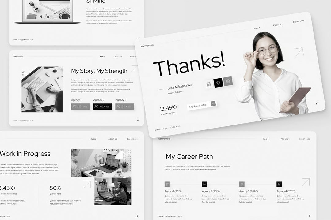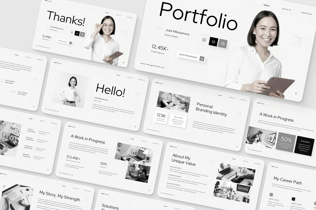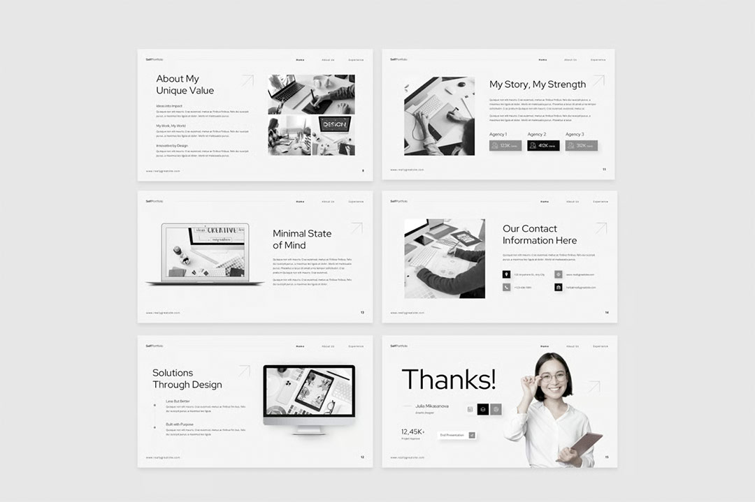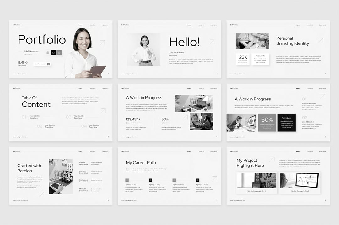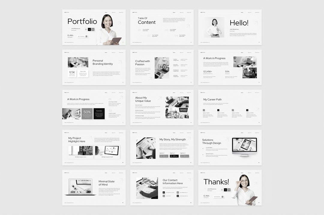 15页极简风个人作品集展示PPT(没有演示图,需自己添加)