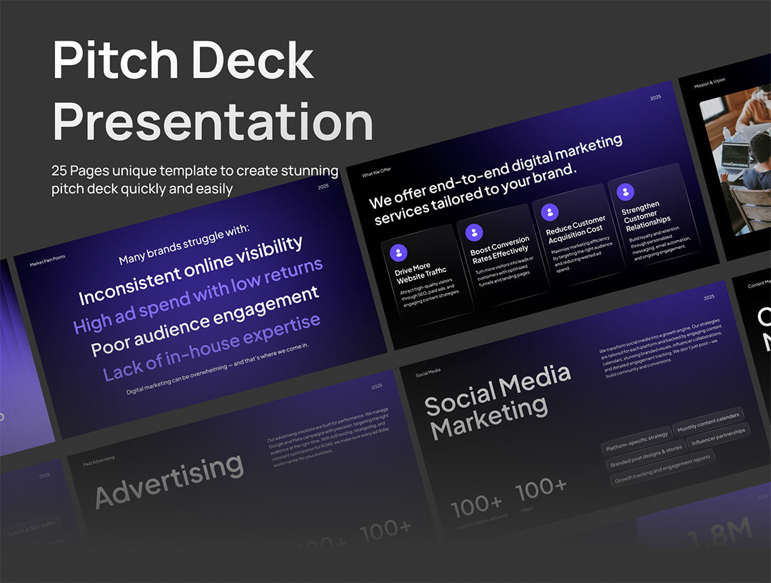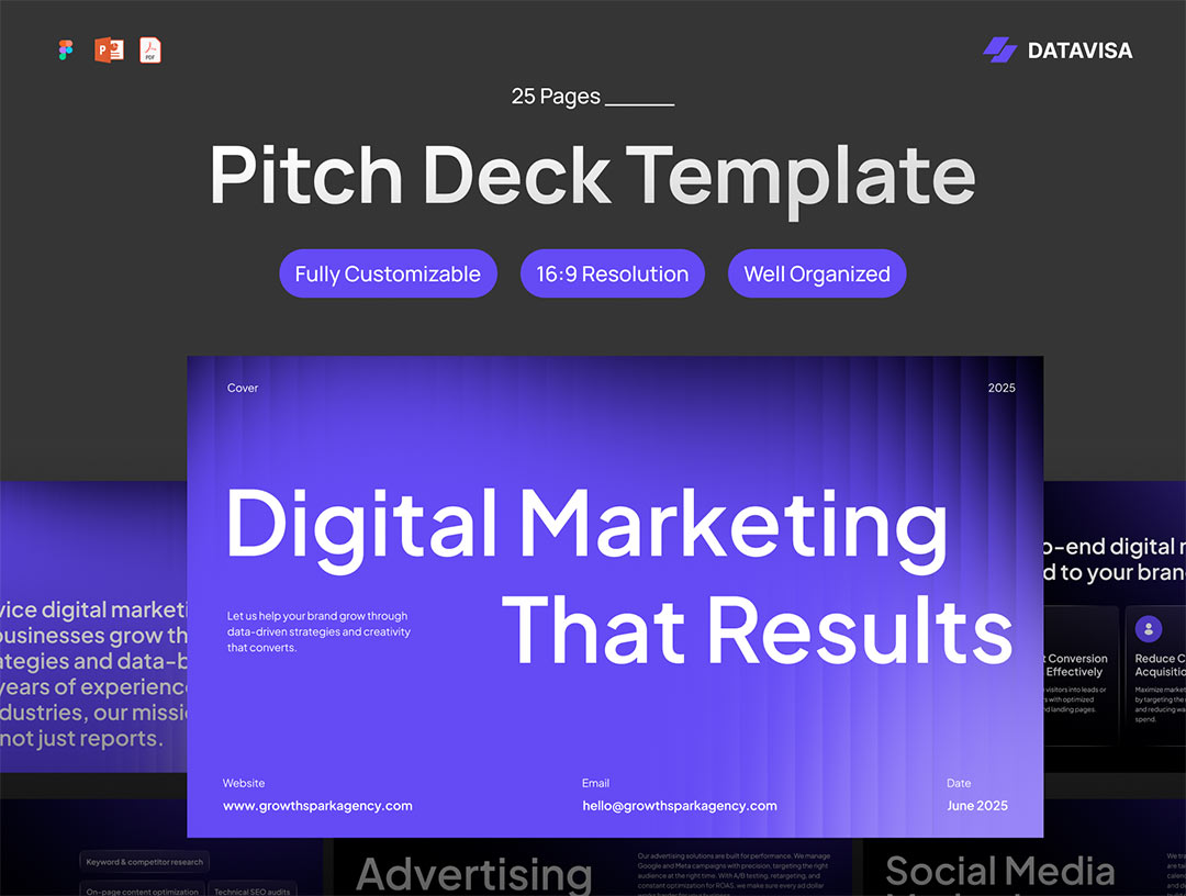 25页数字营销、创意工作室精美演示文稿Figma,PPT,PDF格式