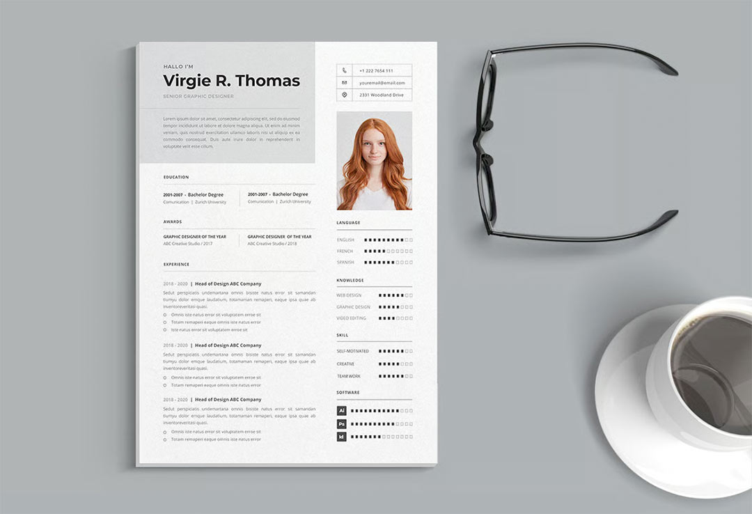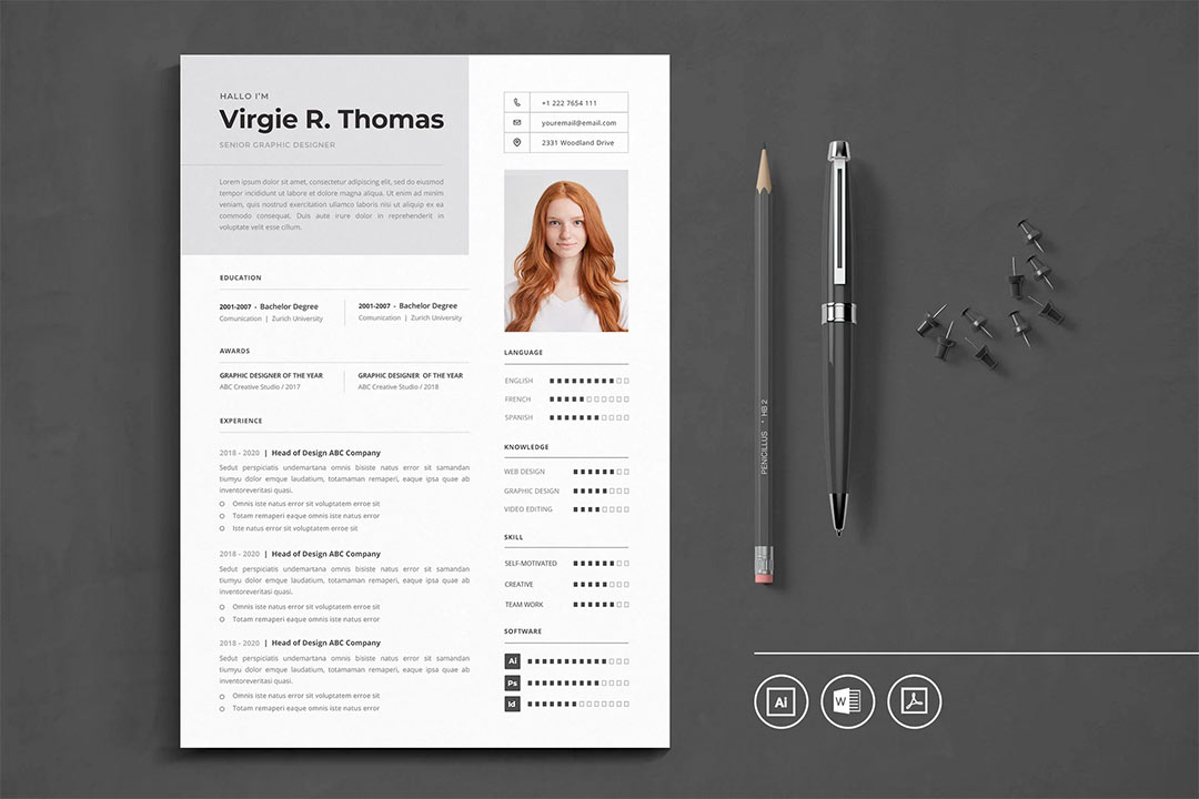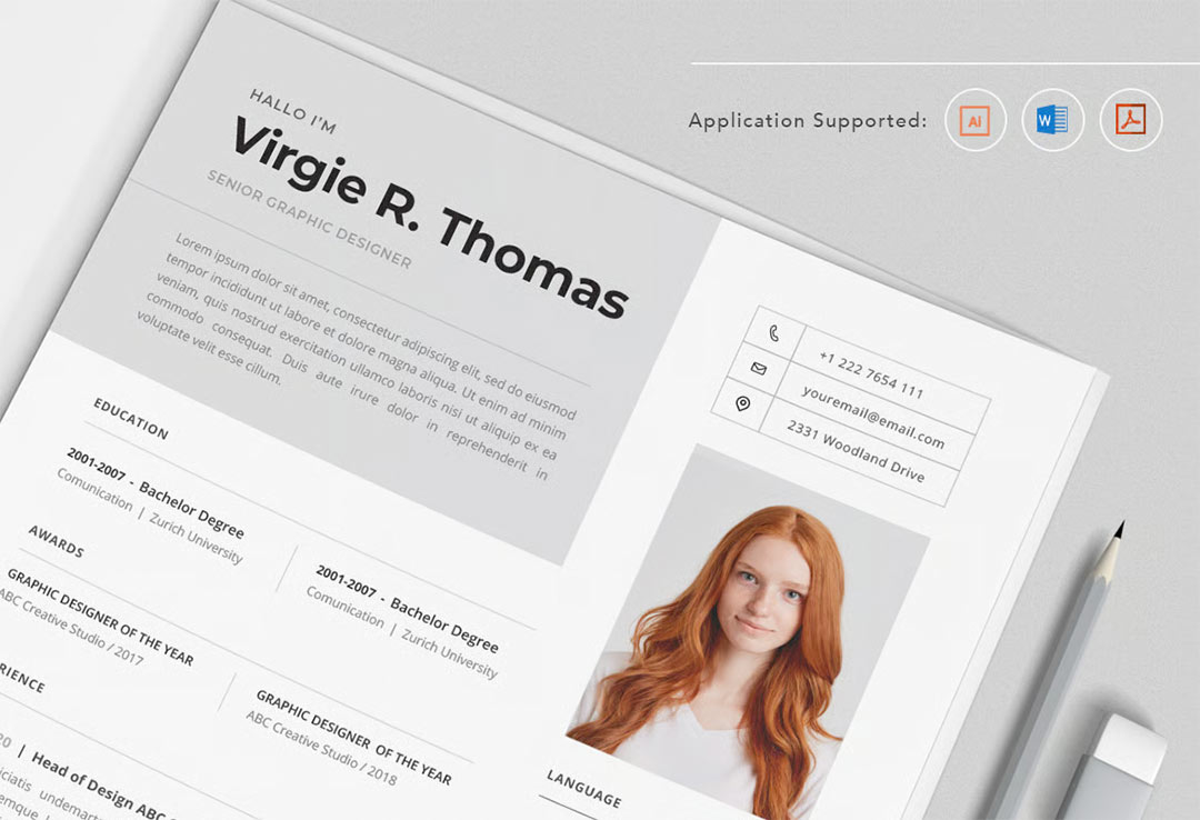 设计创意专业学生和应届毕业生加分简历DOCX.AI 和.PDF 格式