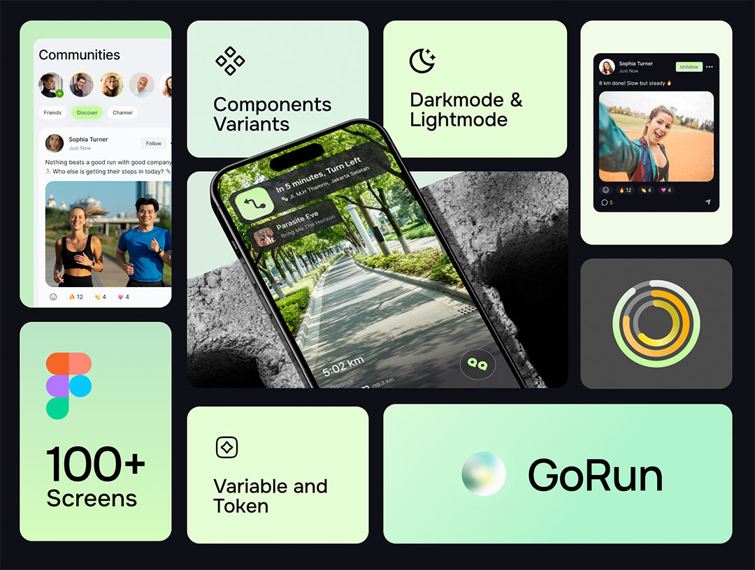 明暗共100页健身与跑步app界面设计figma源文件