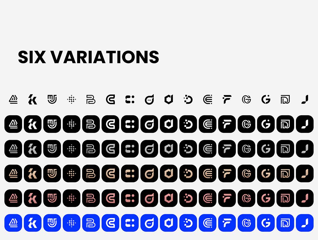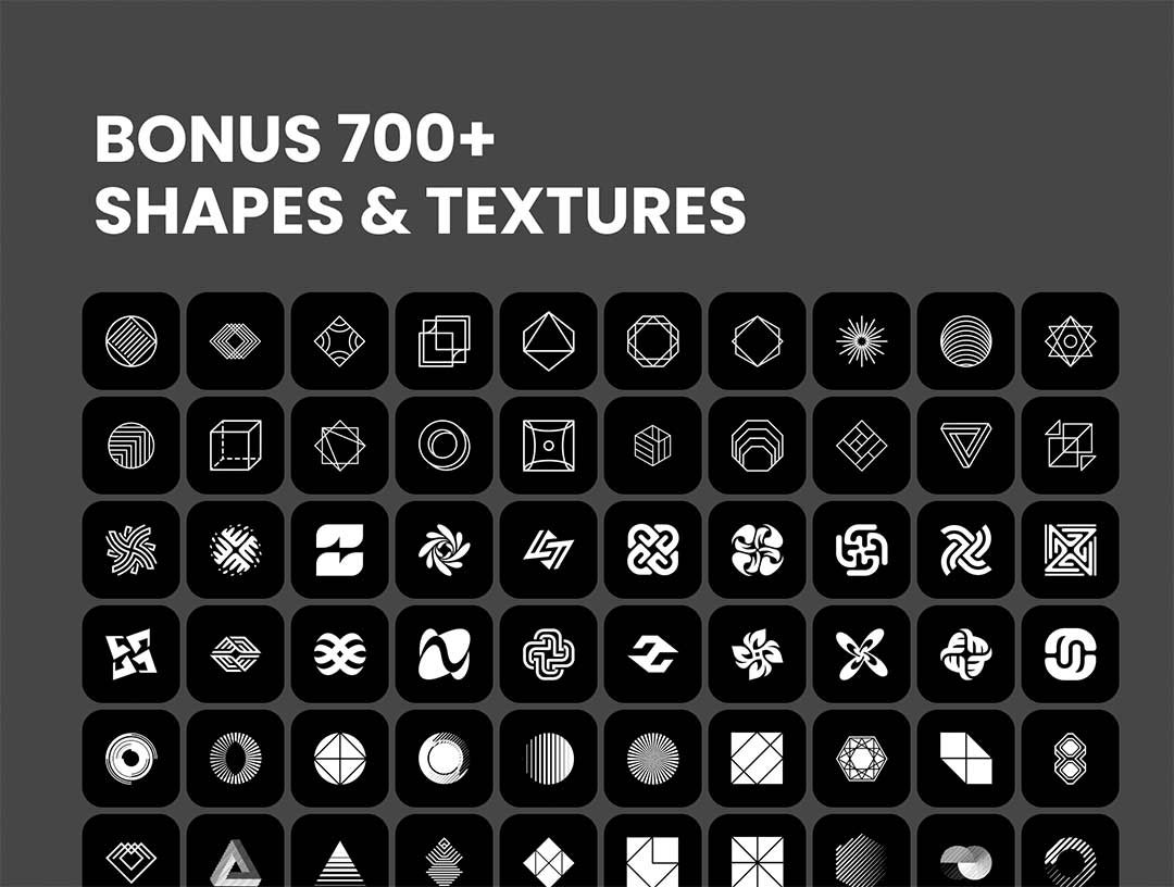 包含超过 4000 个首字母抽象符号和 700 多个形状和纹理的矢量标志集合,全部为矢量格式。这些标志具有高品质和专业性,可以根据任何企业或组织的品牌需求进行完全定制。它们适用于印刷、数字和其他应用,能够即时提升品牌形象,给受众留下持久印象
