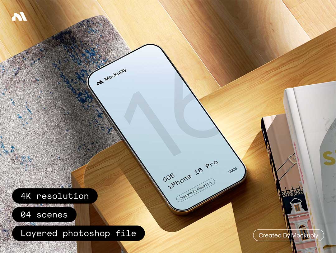 4个超写实的 iPhone 16 Pro 模型样机psd格式