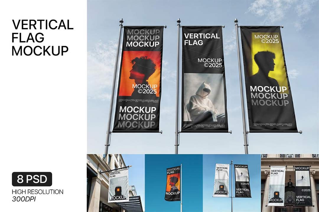 8个垂直旗帜模型样机psd格式