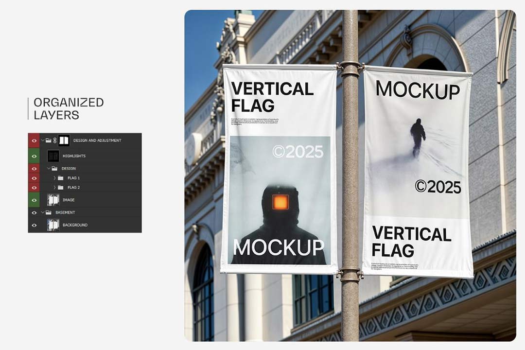 垂直旗帜模型是一个高质量且完全可定制的设计模板,非常适合以逼真和引人注目的格式展示广告、品牌和促销活动。该模型具有时尚的旗杆和垂直旗帜设置,非常适合展示户外活动、展览、贸易展览、店面和路边促销的横幅设计。尺寸:4000 像素 x 4000 像素 分辨率 300 DPI
