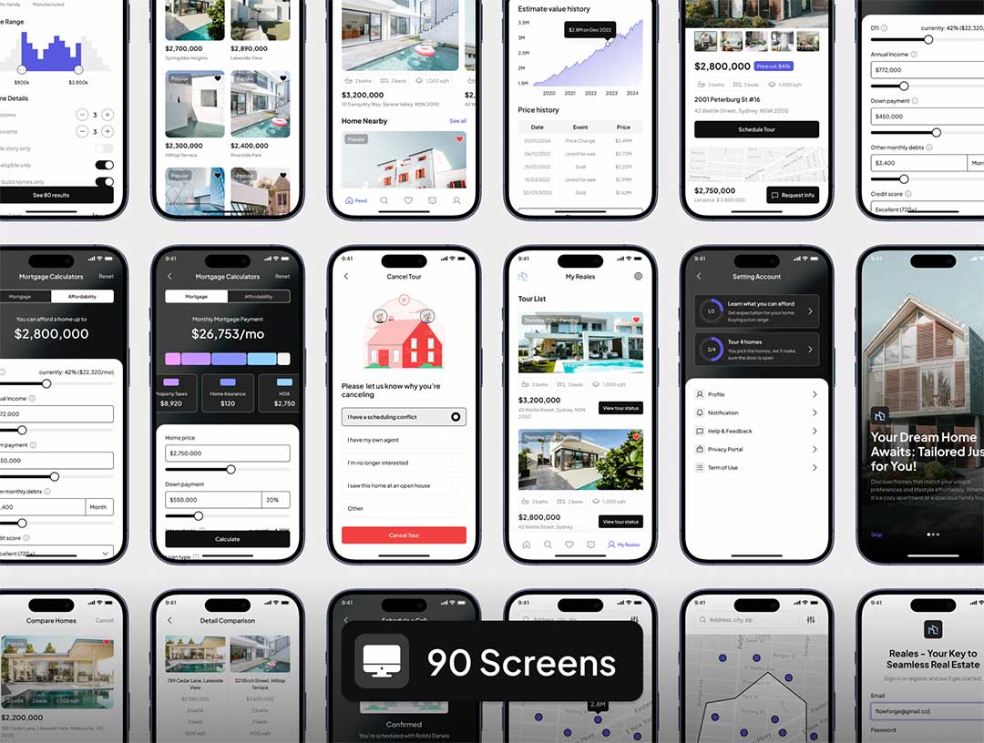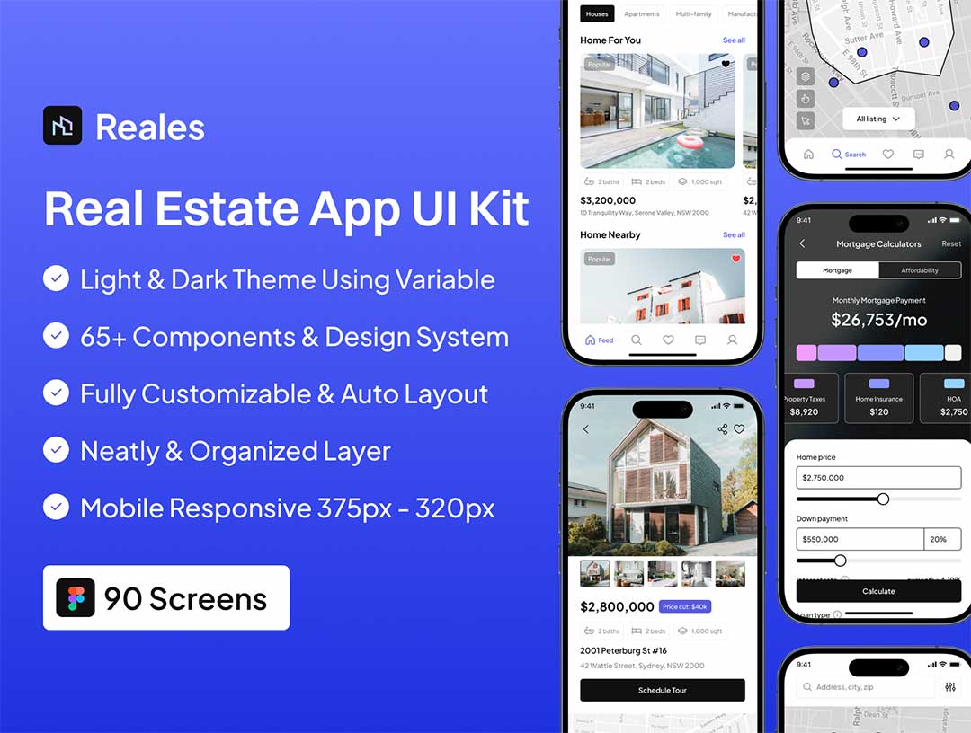 明暗各90页房地产app设计figma源文件