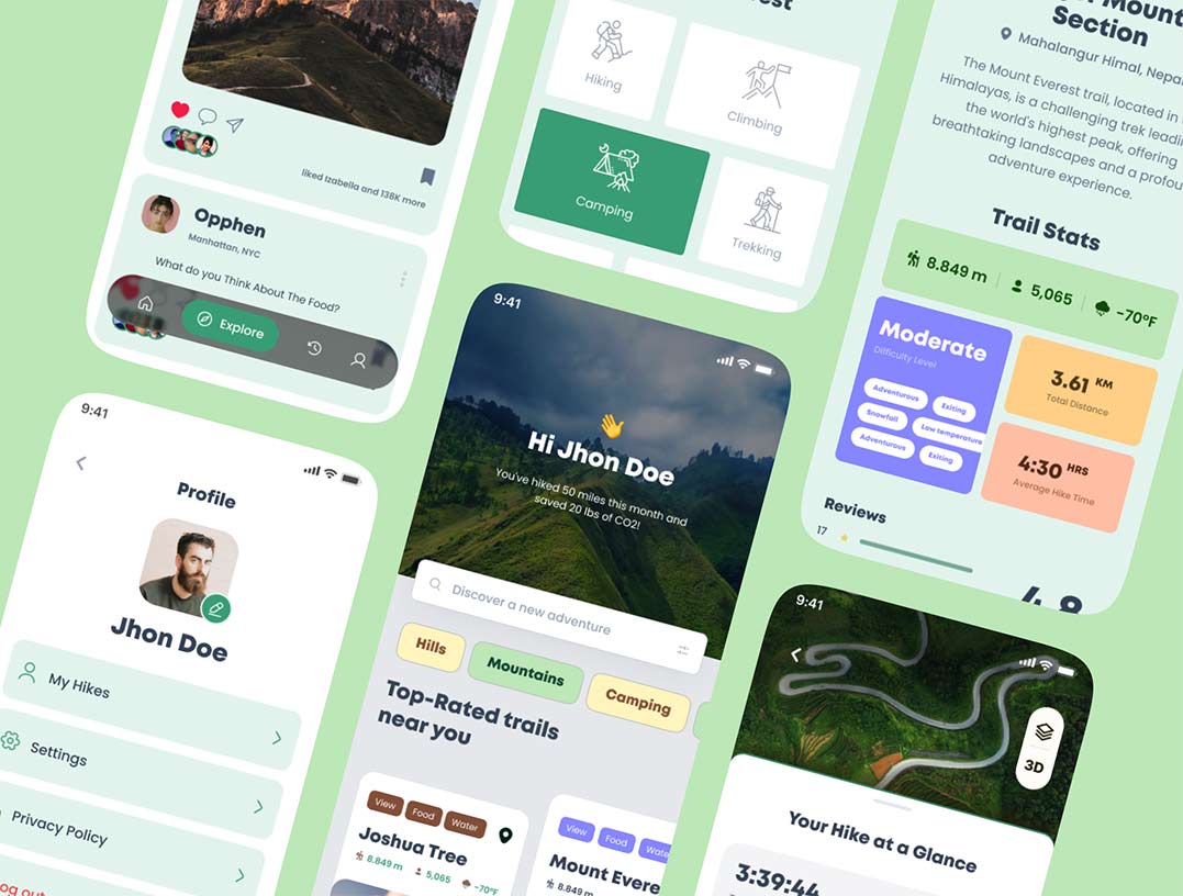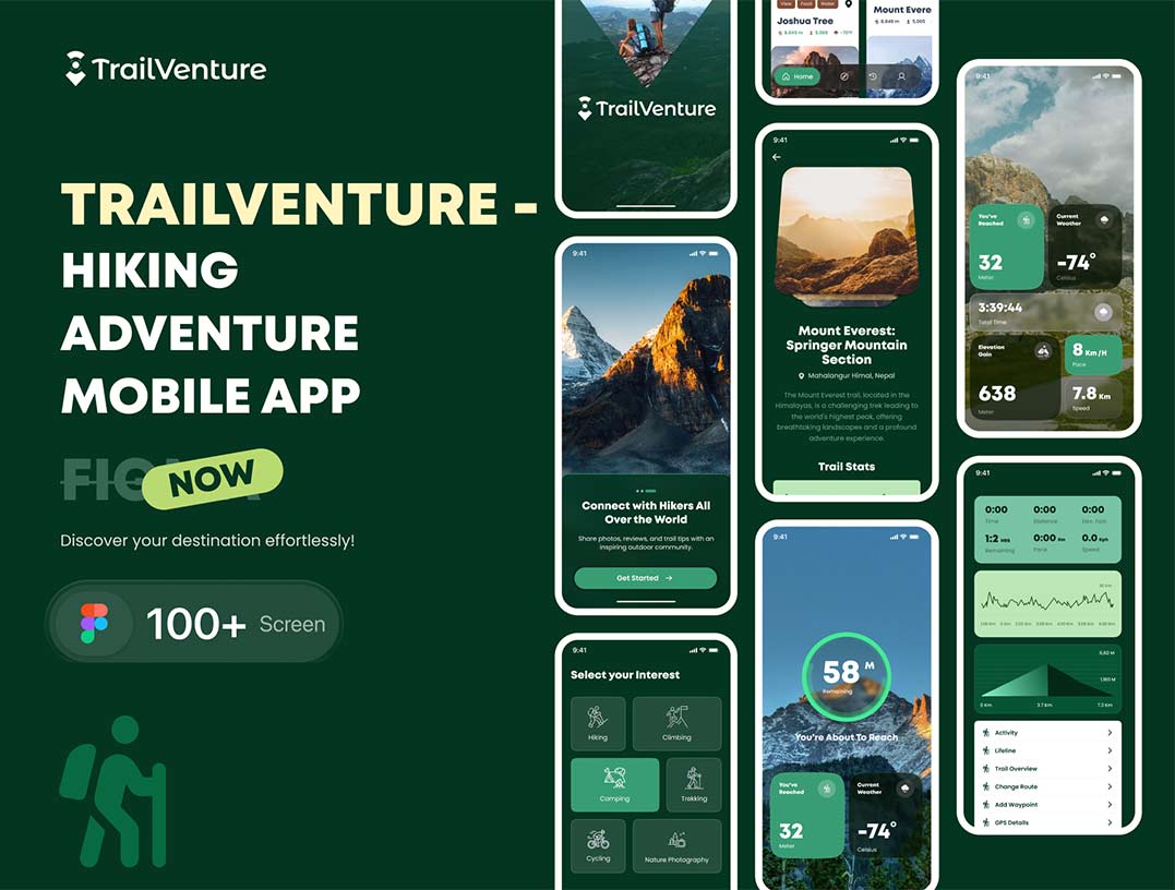 明暗各35页徒步旅行与探险app界面设计figma源文件