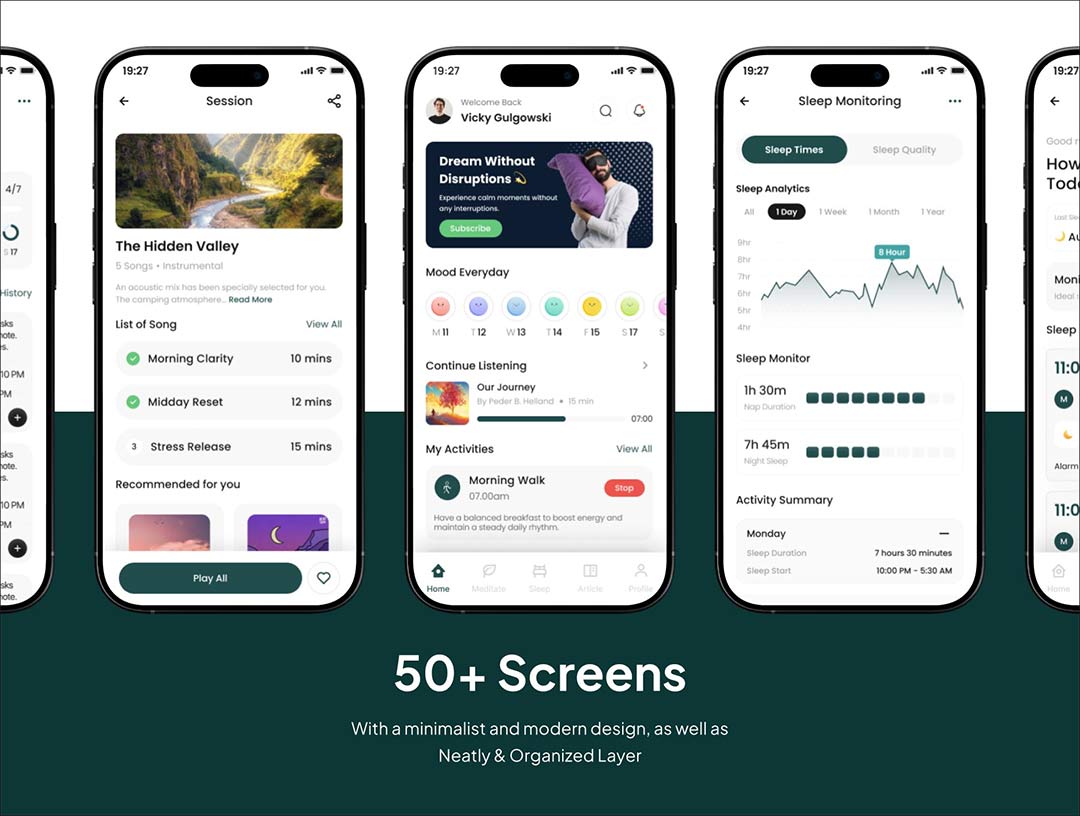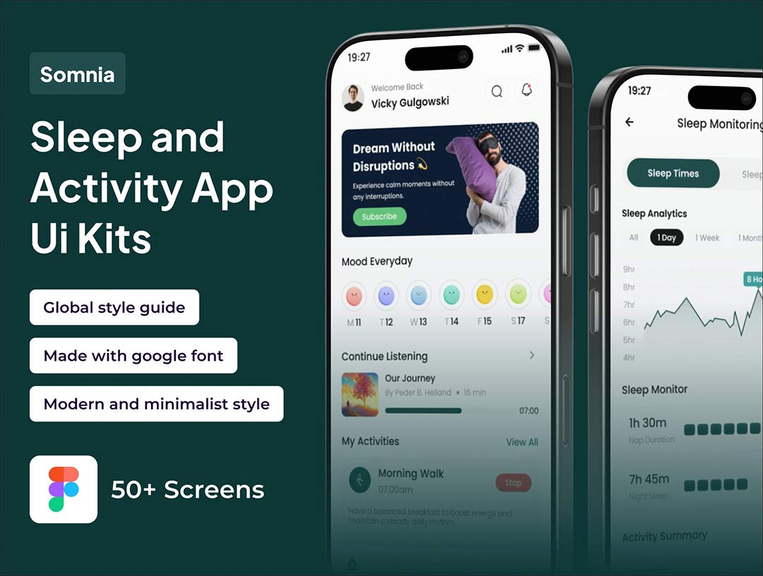 50页睡眠与活动监测高端应用 UI 设计figma源文件