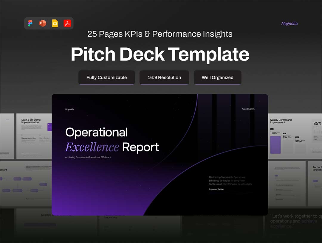 25页运营卓越报告(含 KPI 与业绩洞察)Fig、Deck、PPTX、PDF格式