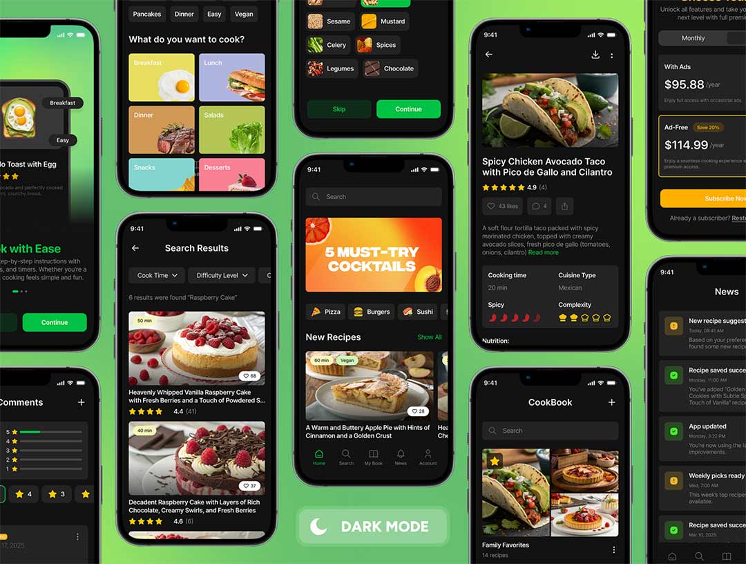 明暗共160页美食烹饪app界面设计figma源文件