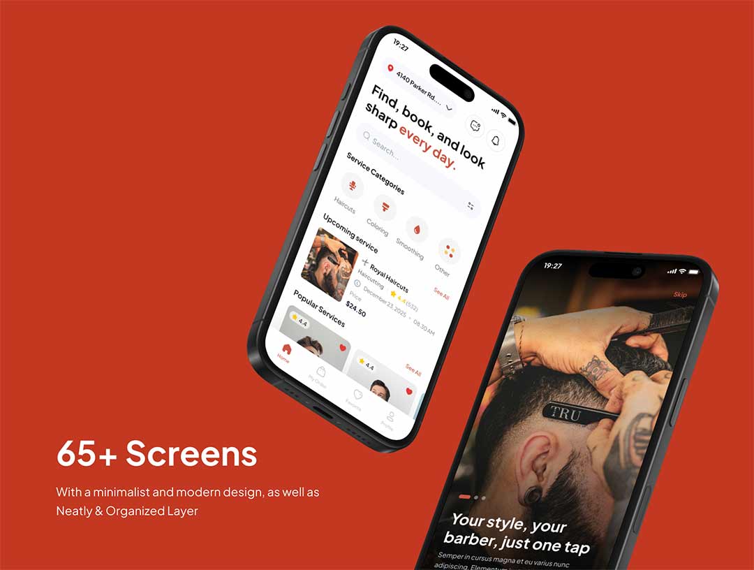 65页时尚理发店app界面设计figma源文件