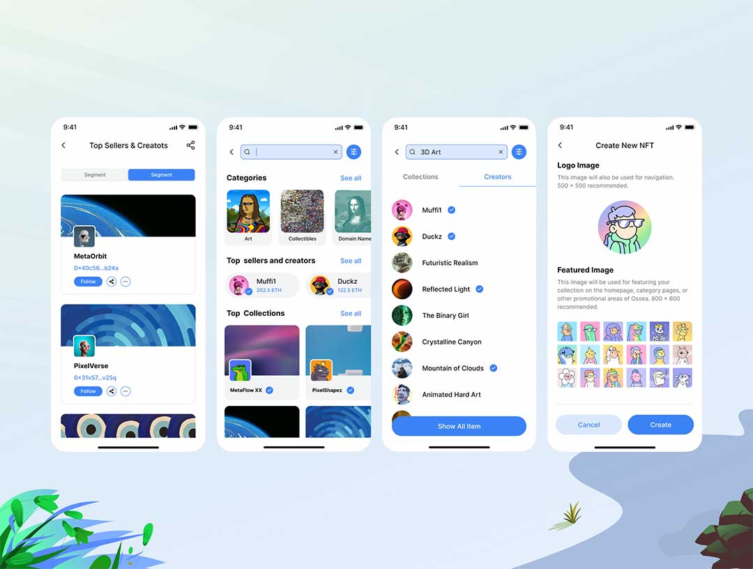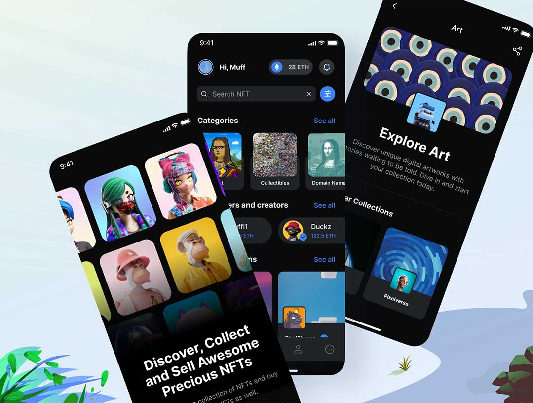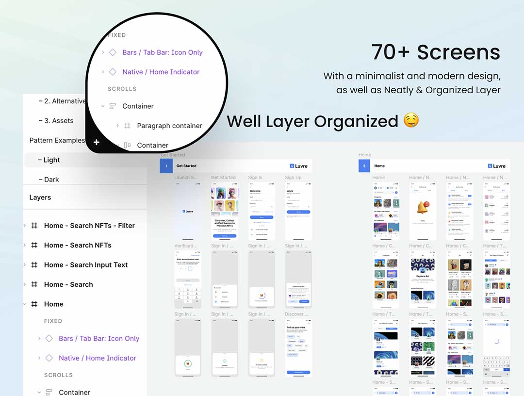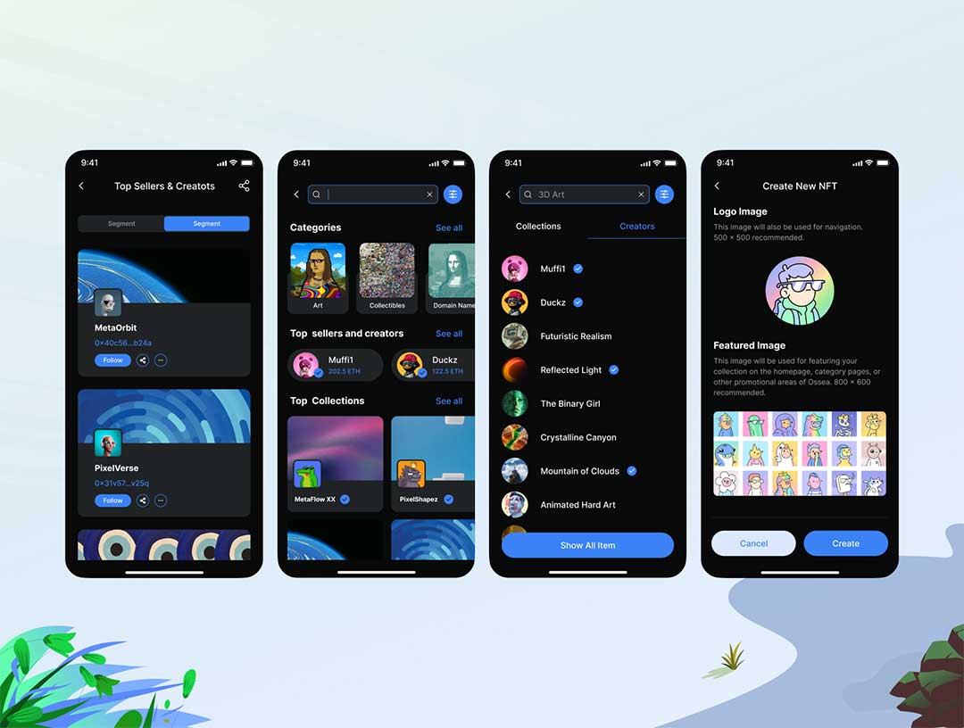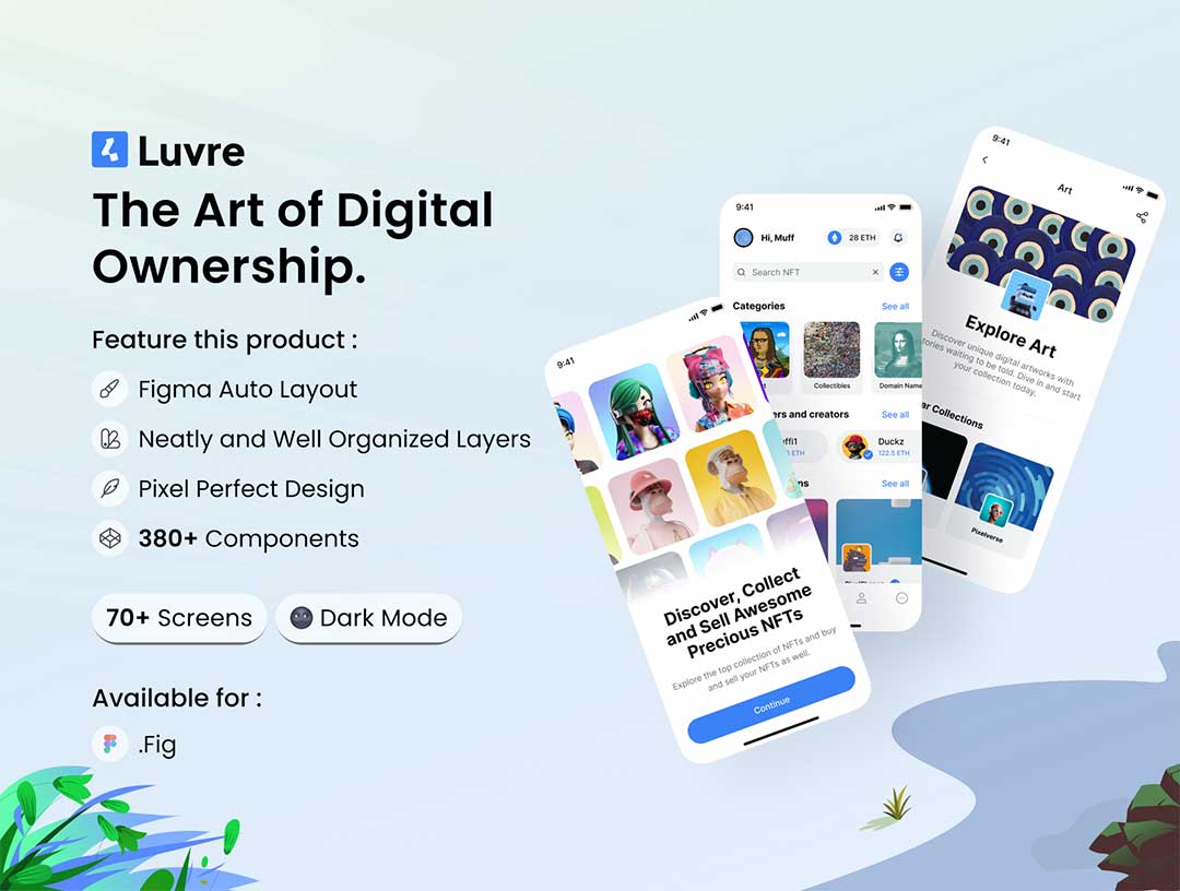 明暗各70页NFT平台app界面设计figma源文件