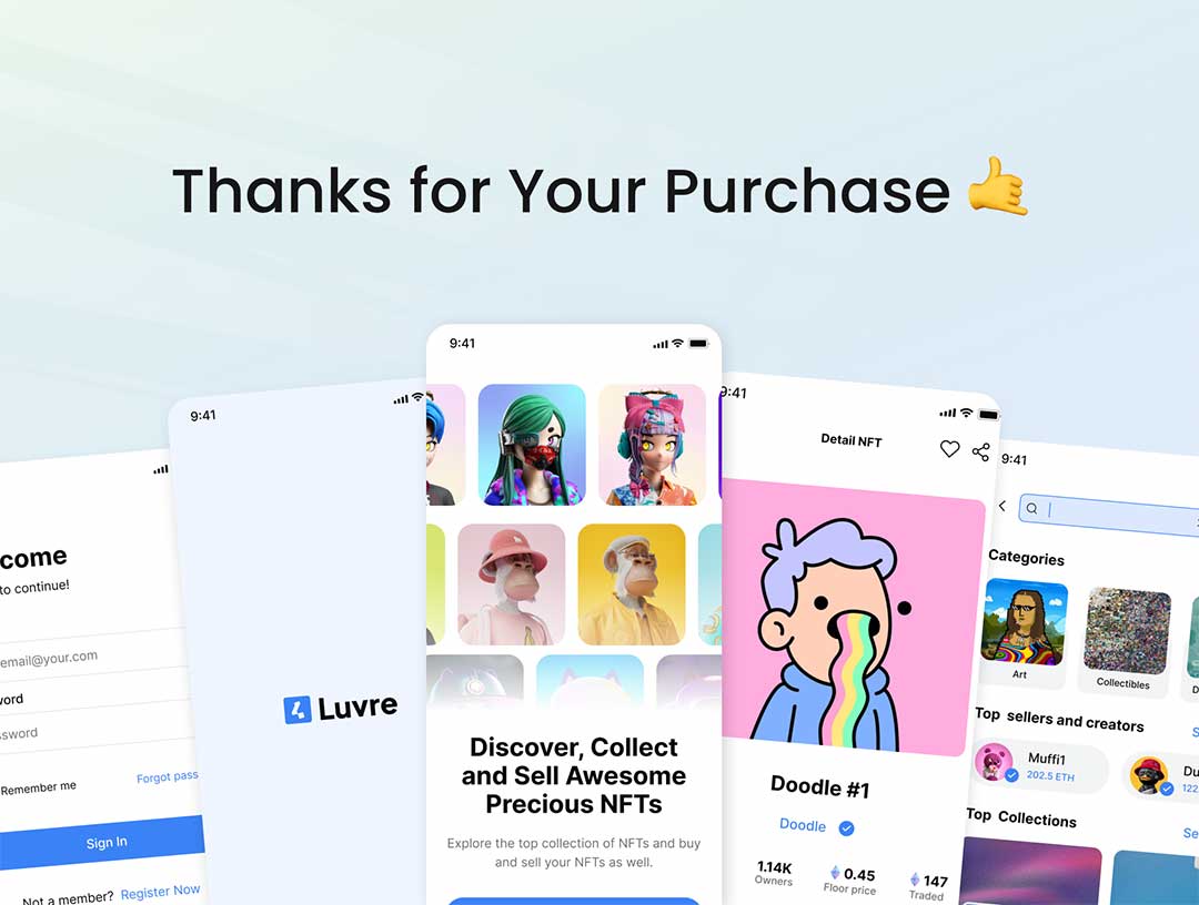 135页明暗模式干净现代的用于NFT市场的UI工具包figma源文件