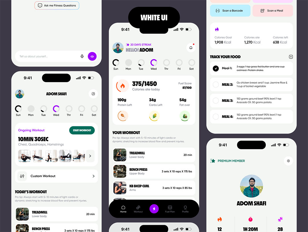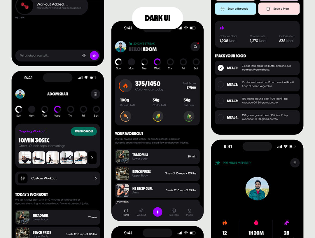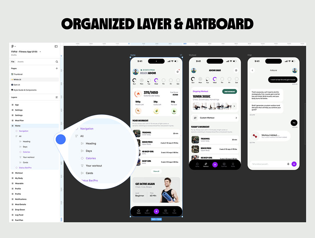明暗共120页健身和膳食计划app界面设计figma源文件