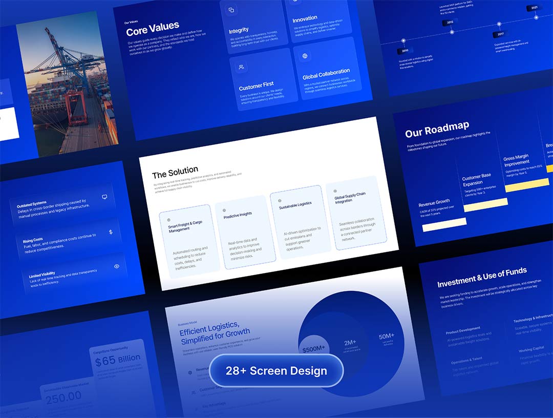 28页物流、SaaS、金融公司宣传模板figma源文件
