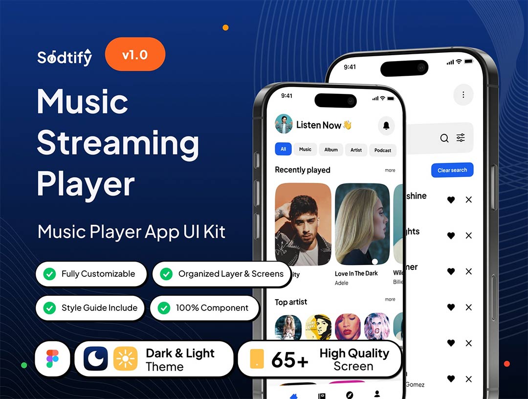 含交互明暗各65页音乐流媒体播放器APP设计fimga源文件