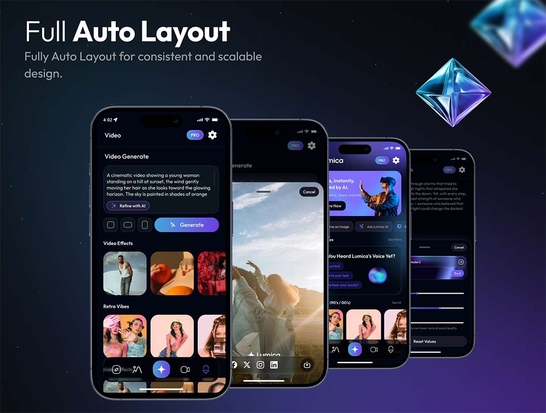 极简风明暗200页AI音乐播放器UI设计figma格式