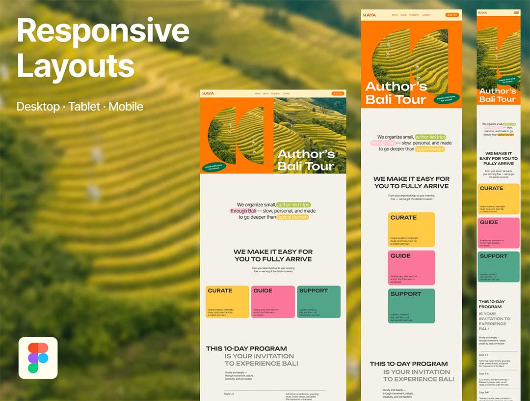 响应式设计瑜伽 / 冥想 / 自然疗愈类旅游度假网站figma源文件