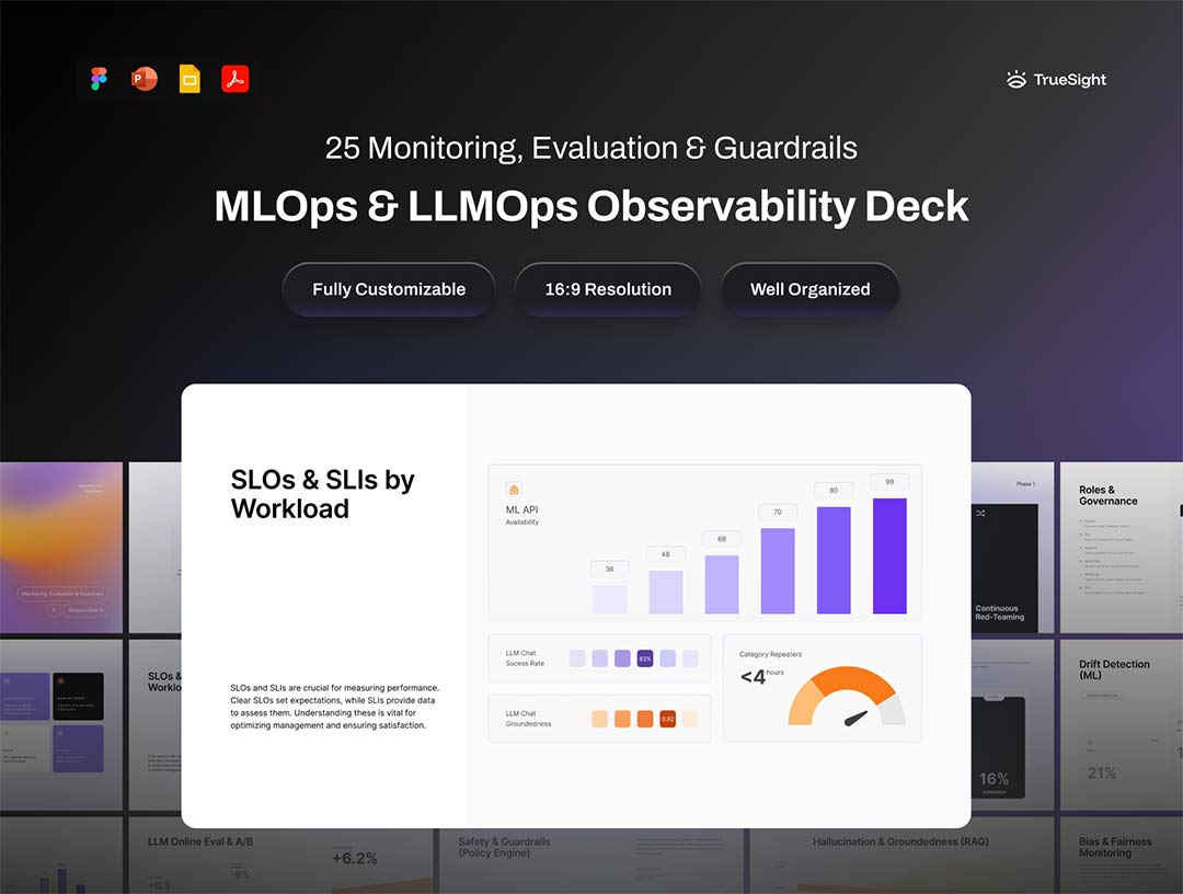 25页MLOps与LLMOps可观测性实践与指标体系Figma, Deck, PPT格式