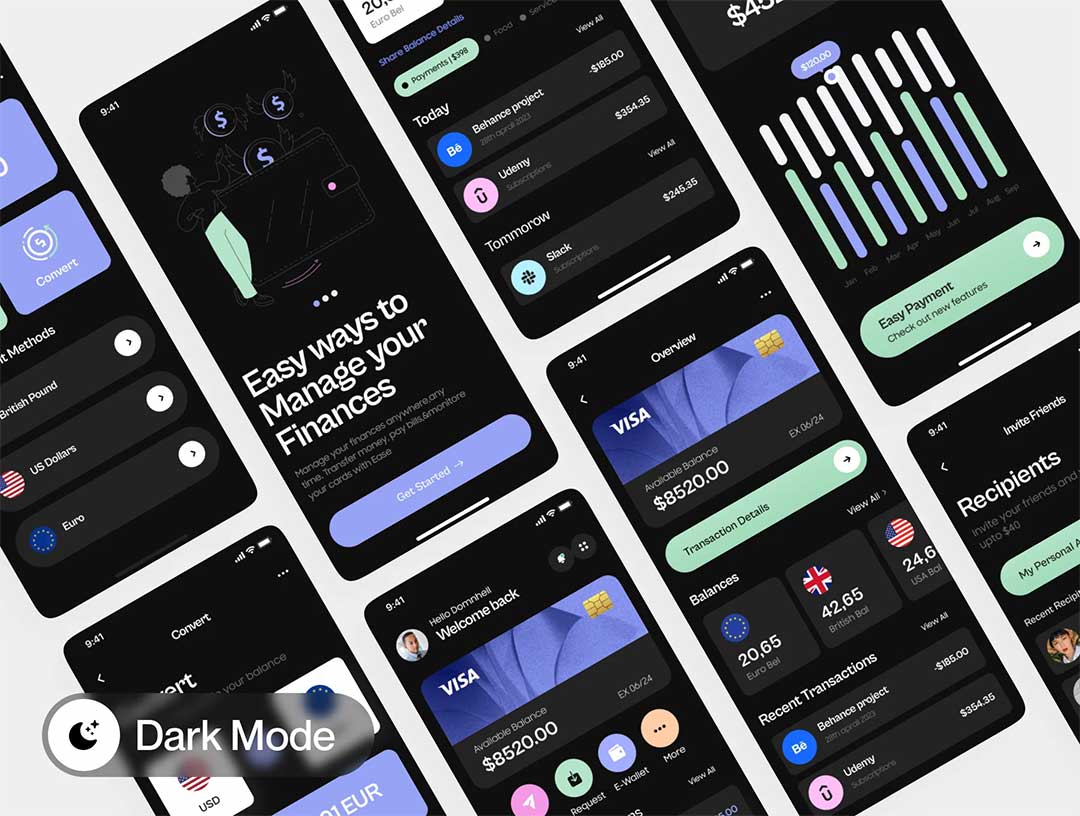 明暗共76页金融科技电子钱包app界面设计figma源文件