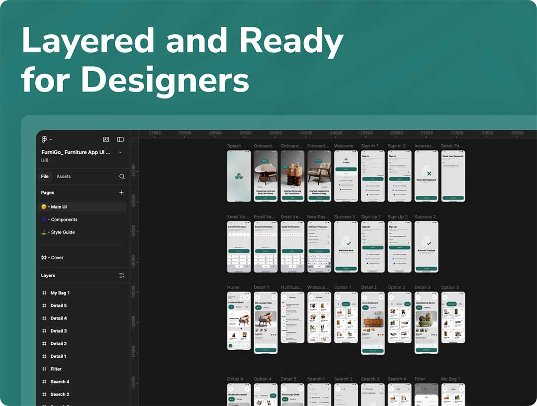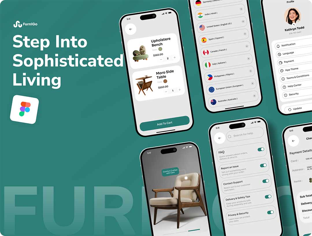 沙龙和美容 UI 设计套件figma源文件,超过25个屏幕50多个组件