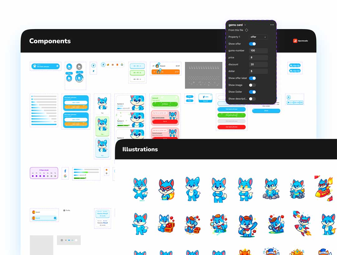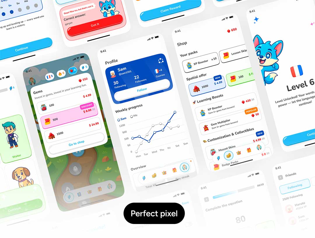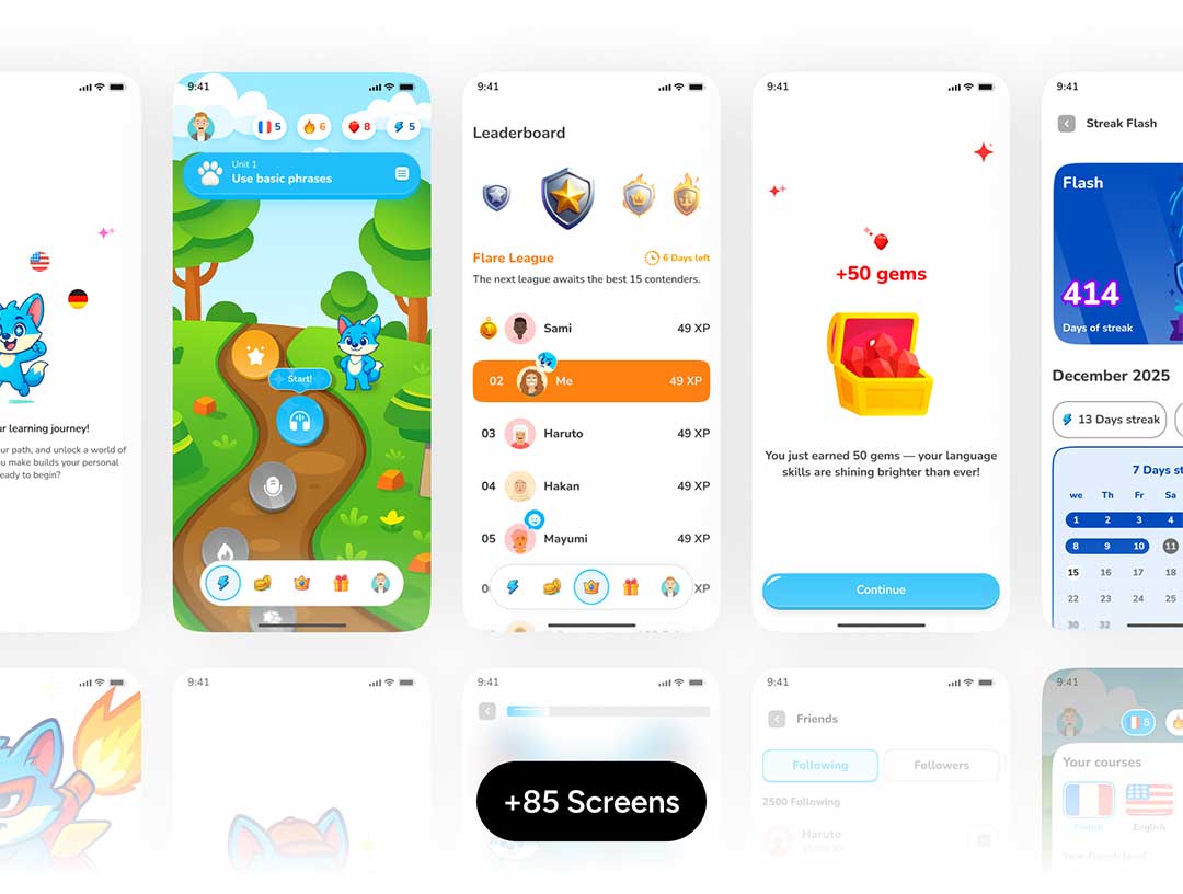 85页儿童游戏化外语学习app界面设计figma源文件