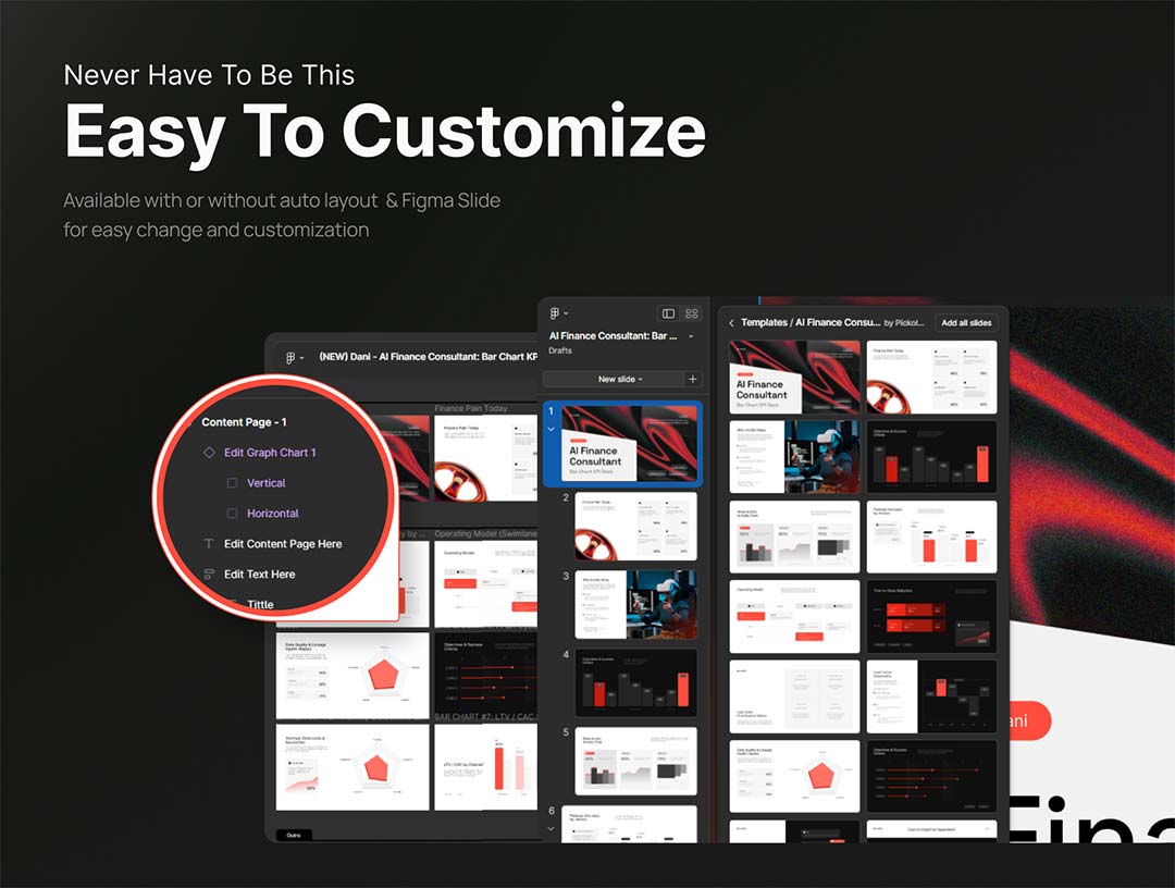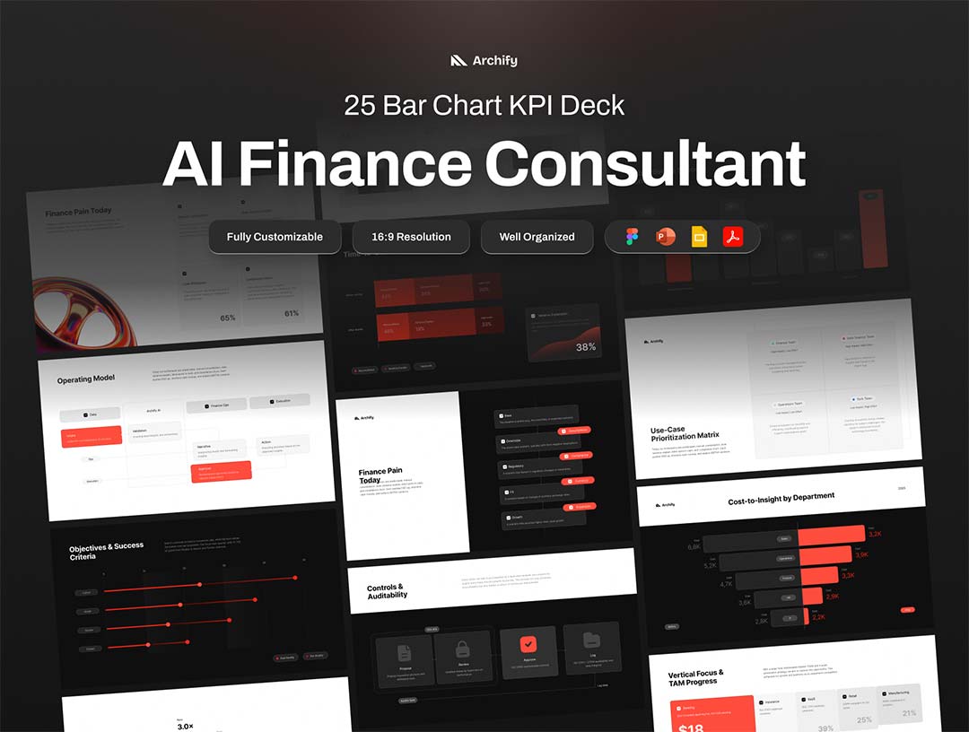 25页人工智能财务顾问 柱状图 KPI 数据看板Figma, Deck, PPTX格式
