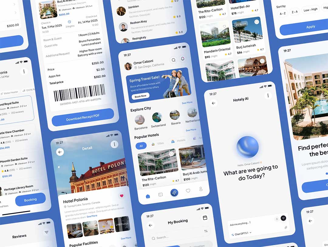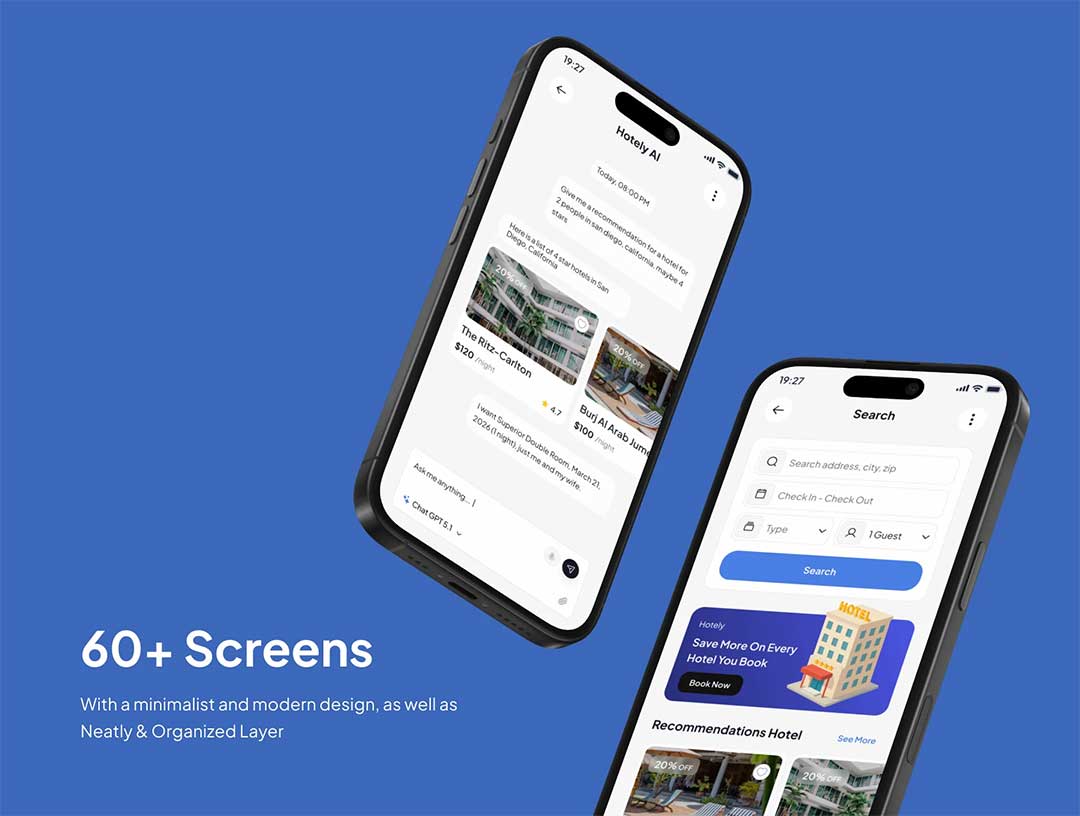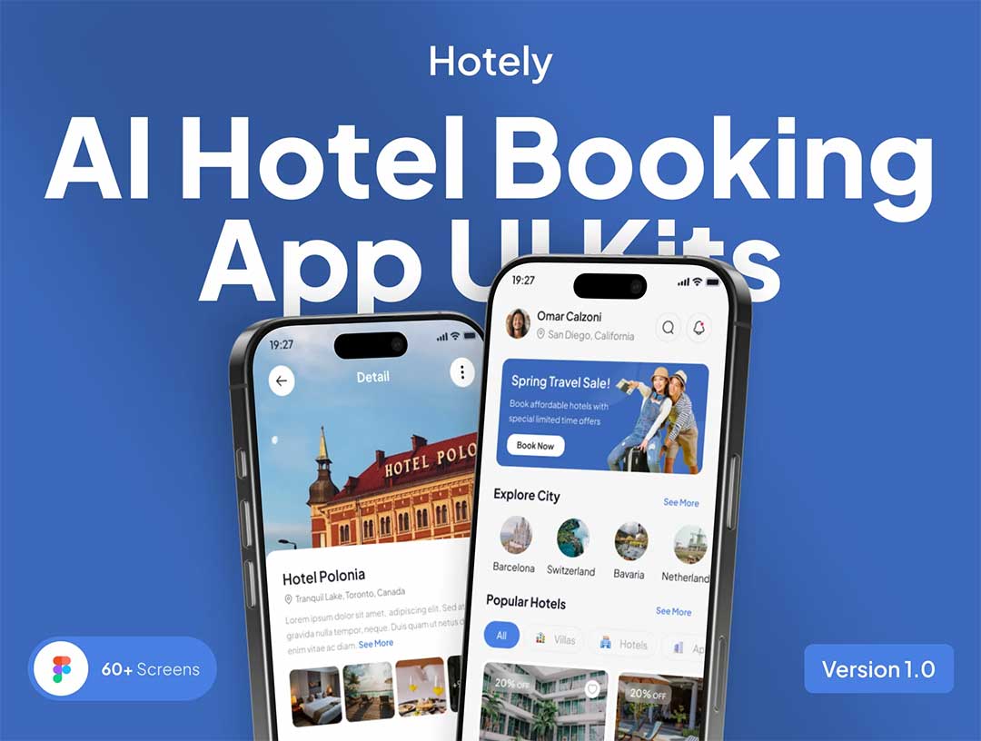 65页AI旅游酒店预订app界面设计figma源文件
