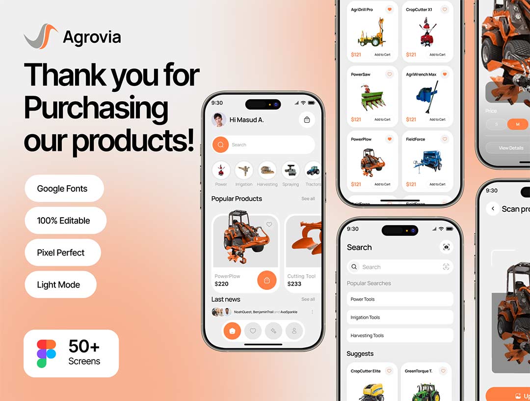 50页农业科技,机器电商平台APP设计figma源文件