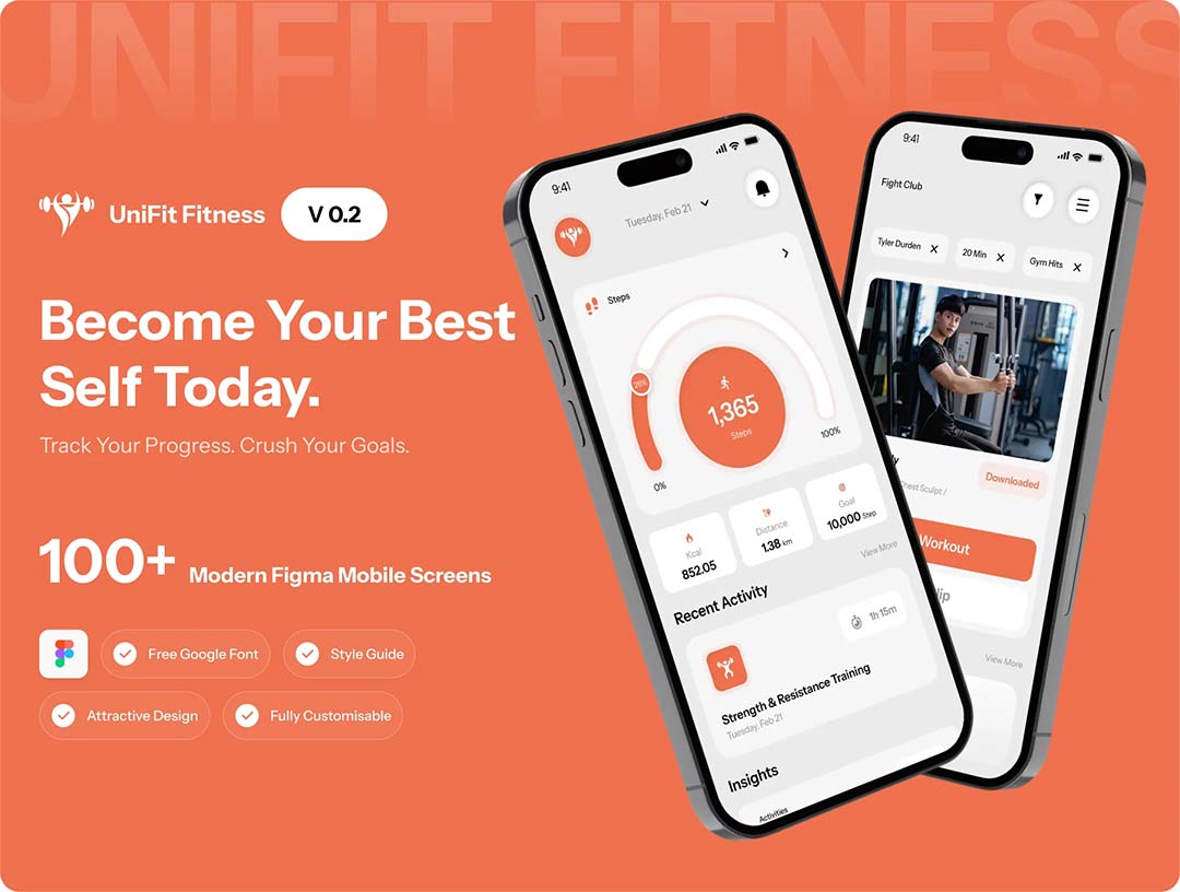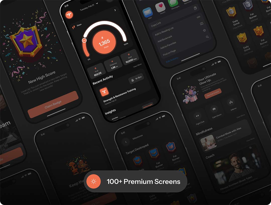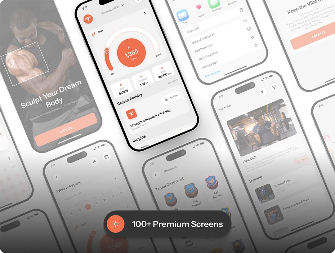 明暗各100页健身|健康与锻炼追踪UI设计figma源文件