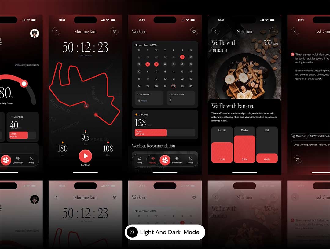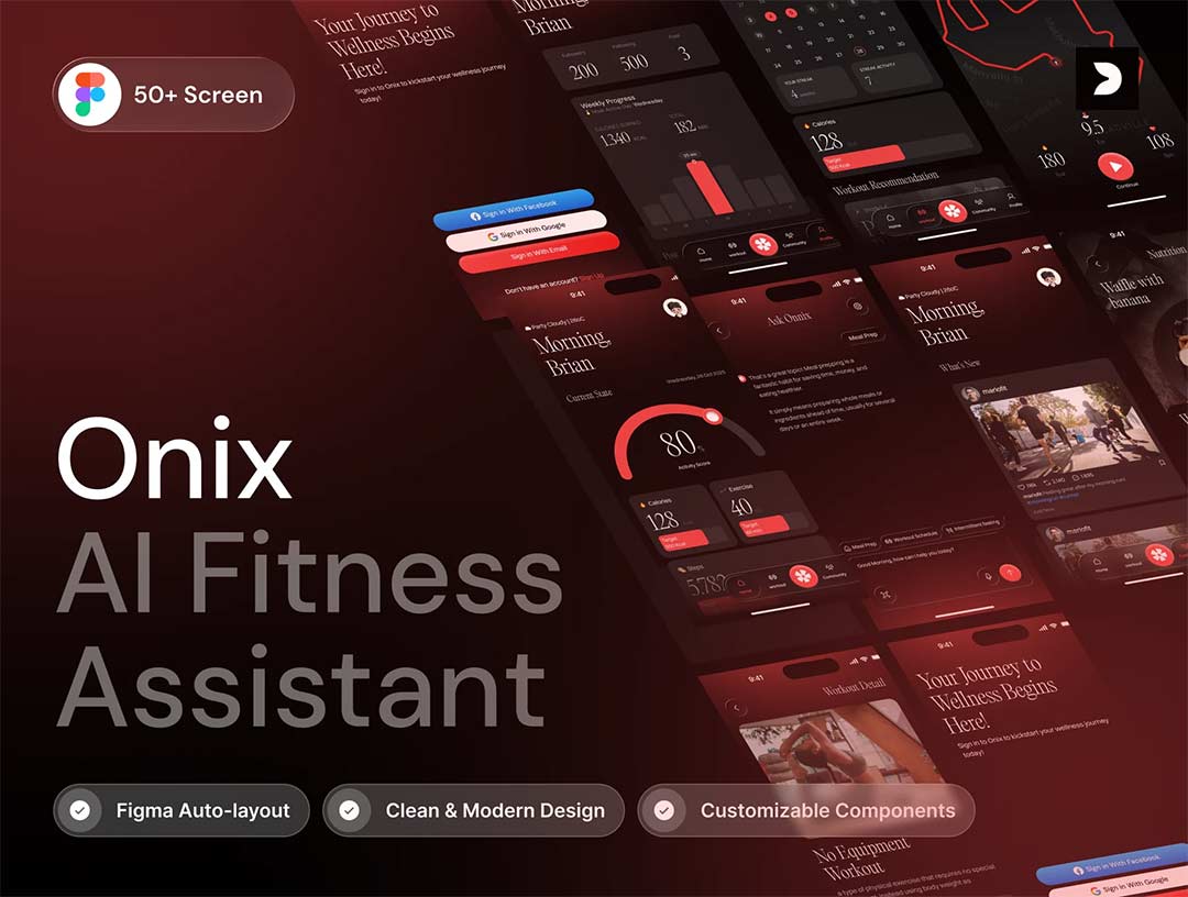 明暗各50页AI健身助理UI设计figma源文件