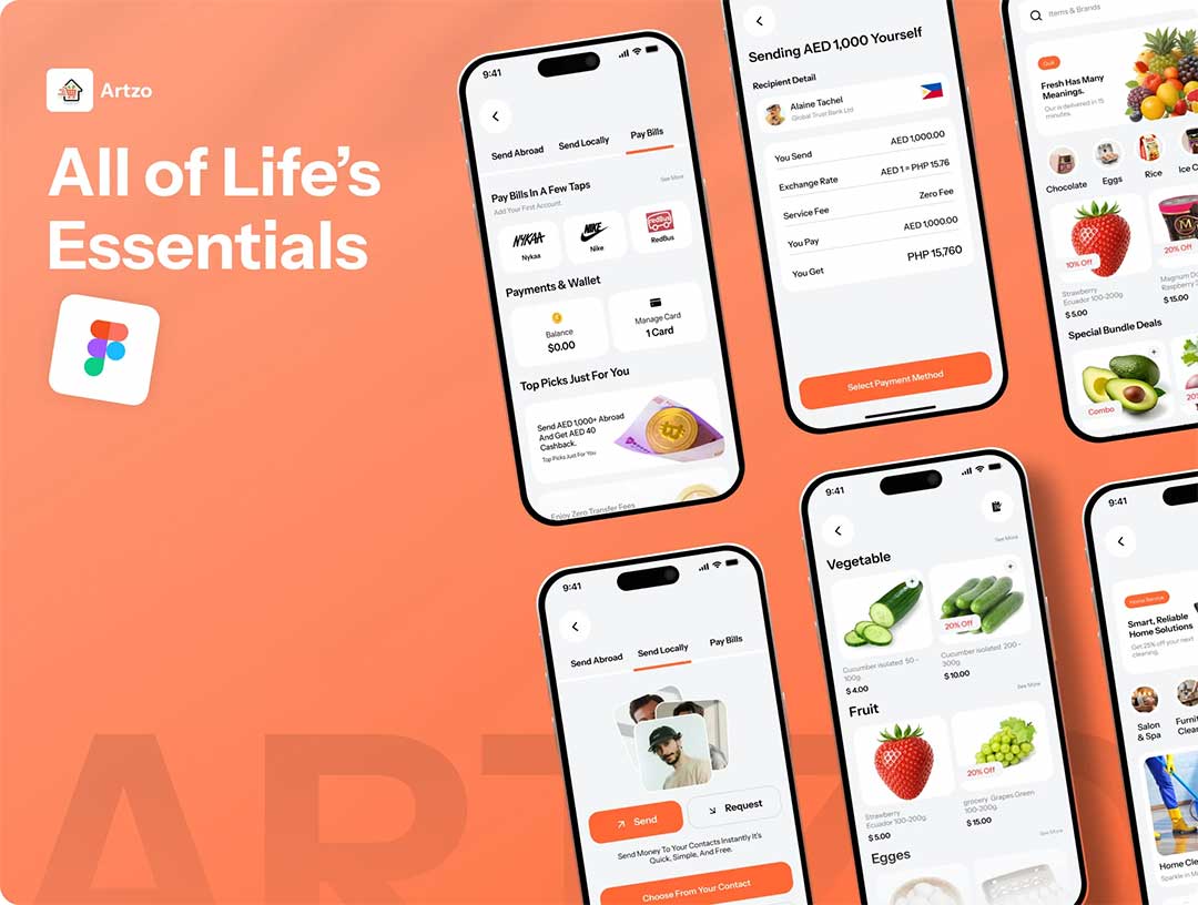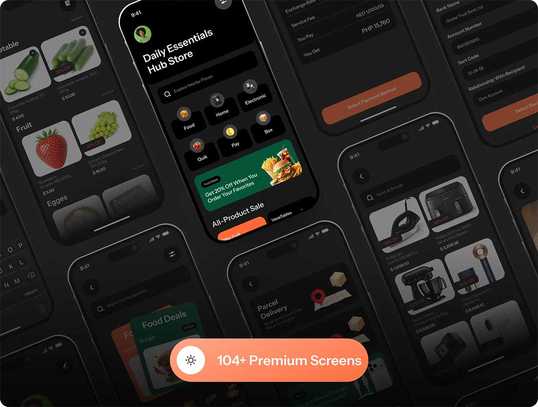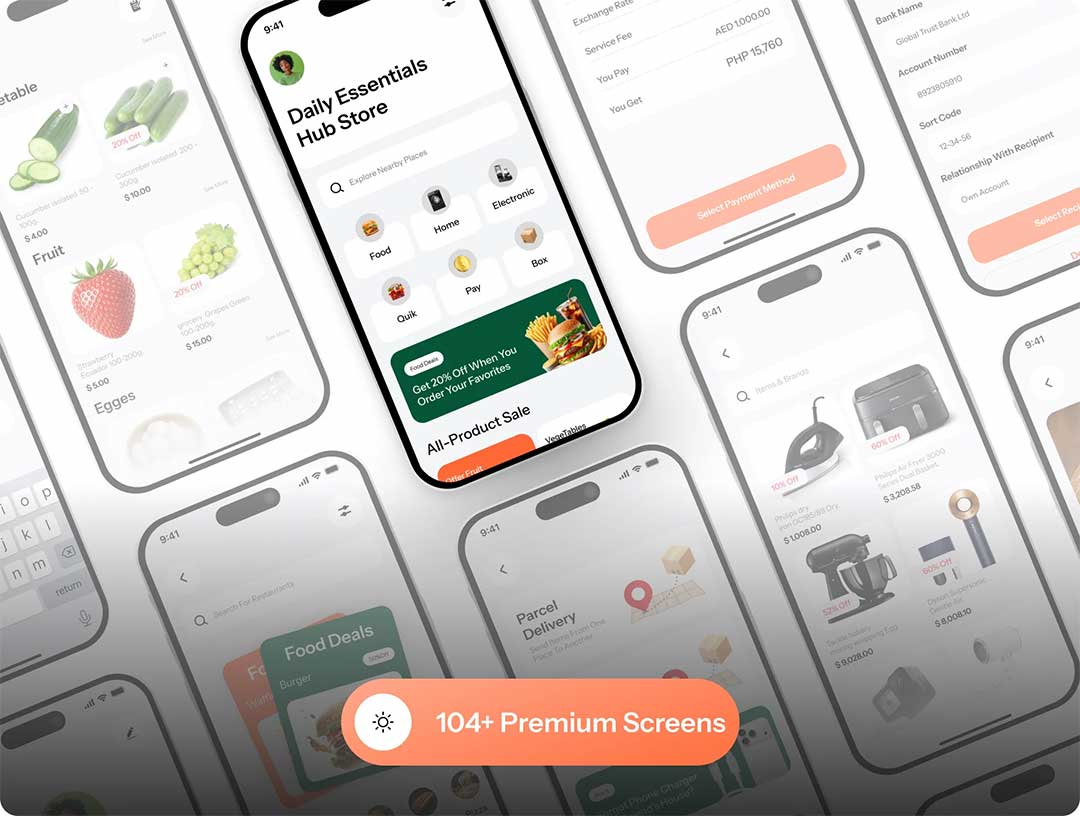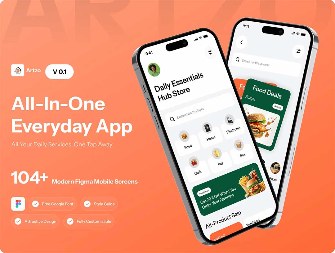104页综合日常服务,购物点餐美容等APP设计figma源文件