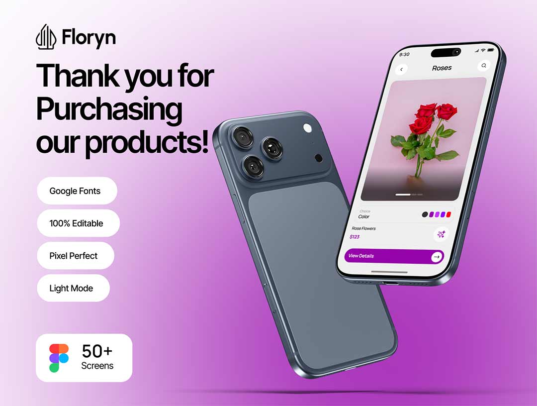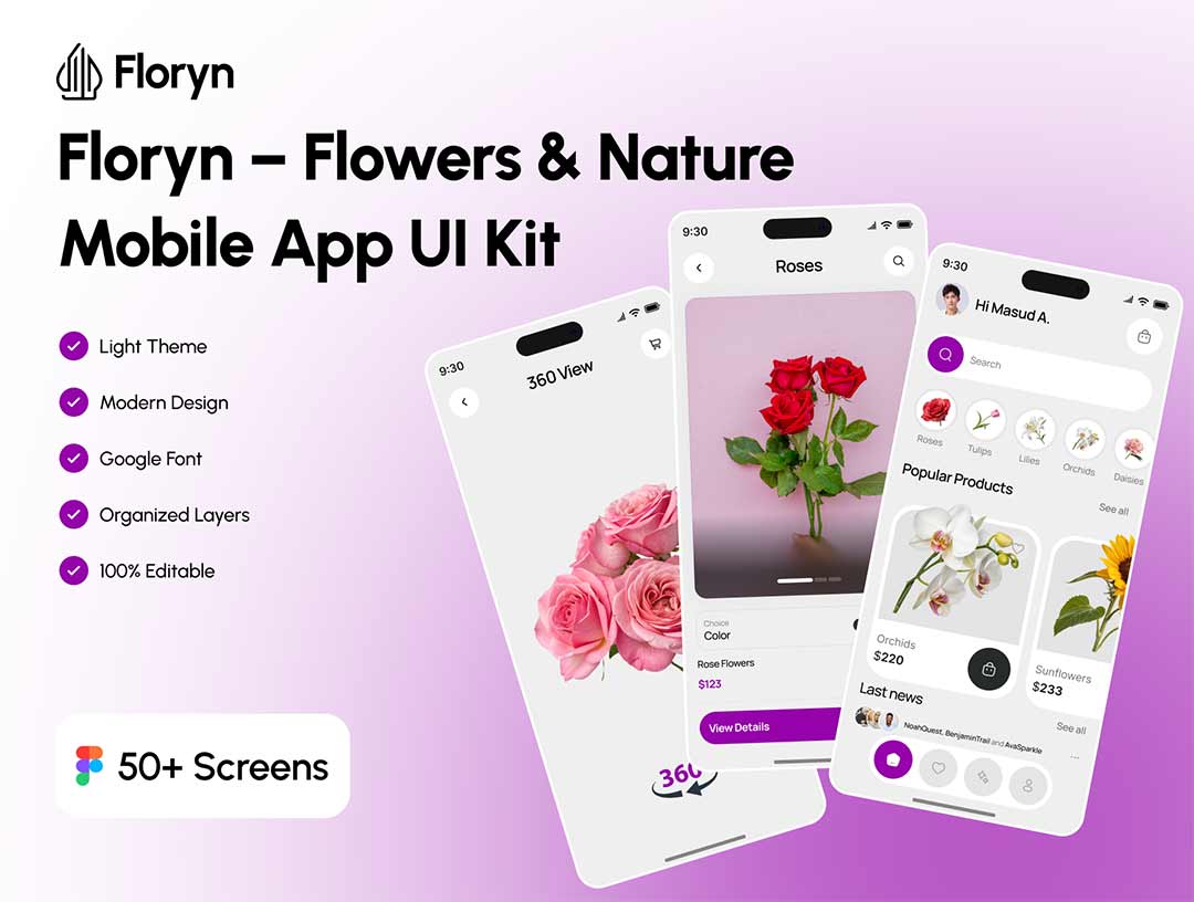 50页现代花卉与自然主题电商 APP 设计figma源文件