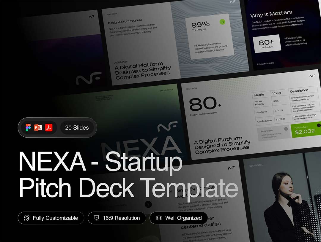 (PPT,deck格式需要自己贴图)20页创业提案模板PPT,figma,PDF格式