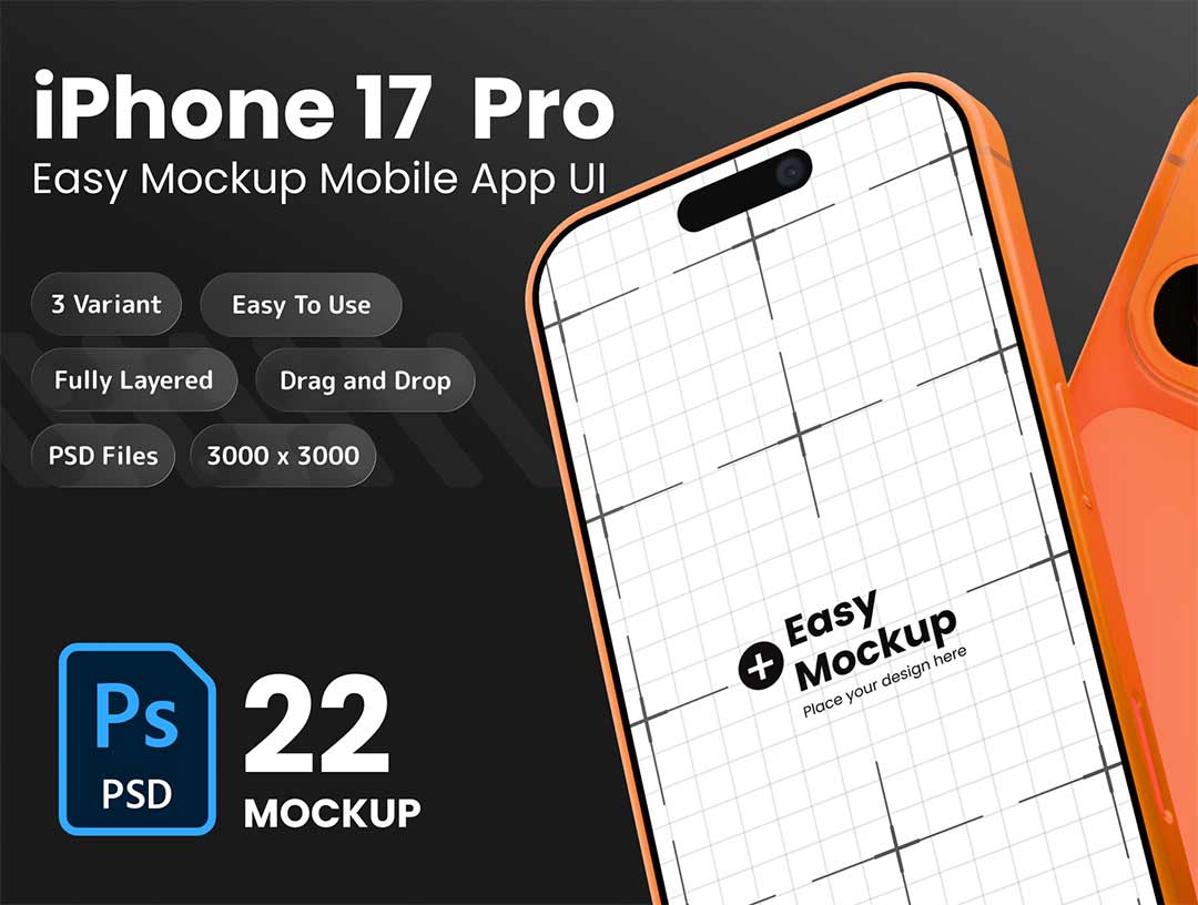 22个 iPhone 17 Pro 模型样机包PSD格式