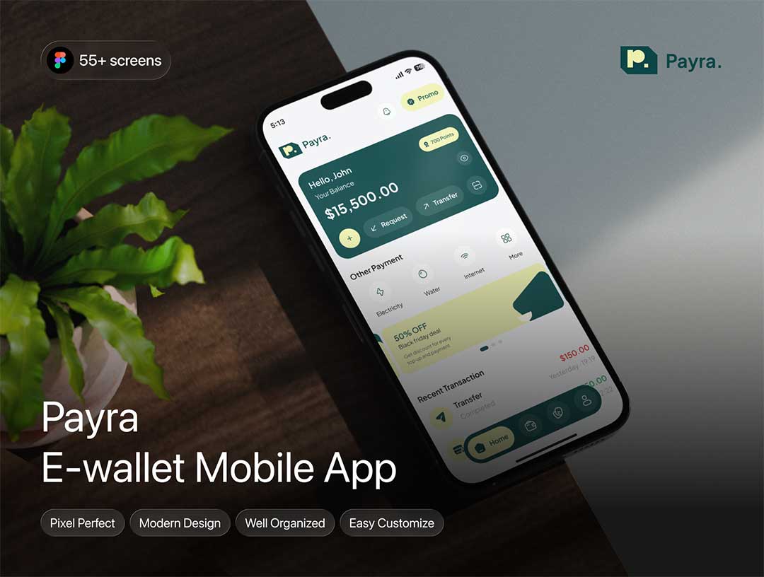 55页电子钱包app界面设计figma源文件