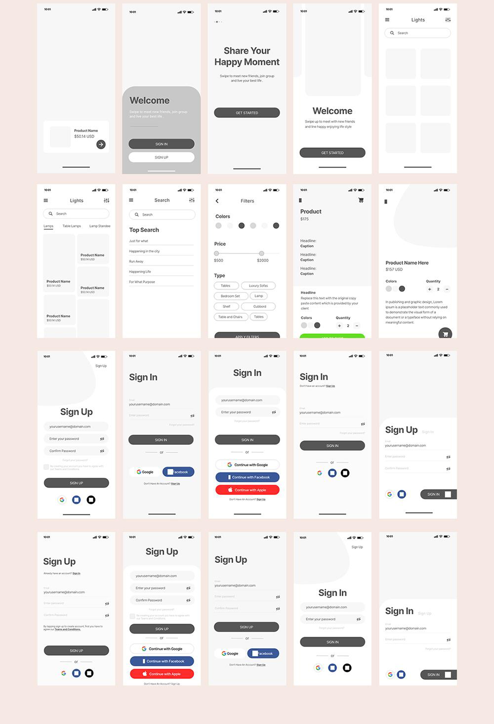 95页APP高保真原型图,无套路,免费分享! 共95个页面,9大类别,含登录注册、产品介绍、数据表单、搜索、菜单、详情页面等,仅供个人学习使用哦! 提供的文件类型:Figma、Sketch 和 XD(可通过三方软件转为PSD格式)