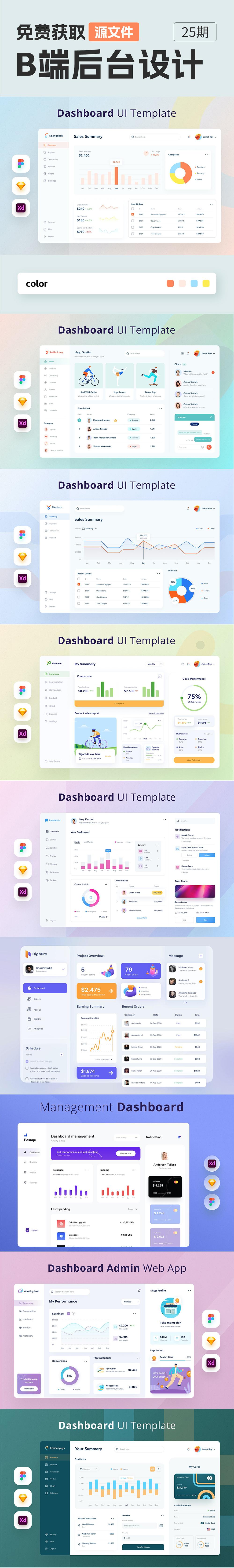9套B端后台仪表盘设计源文件,提供Figma、Sketch 、 XD格式(可转为PSD格式)!