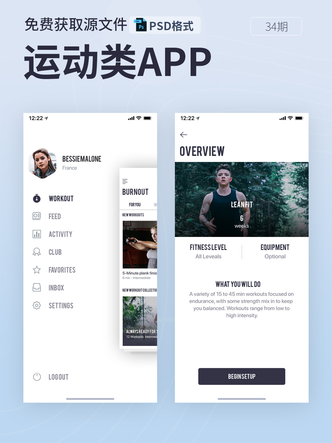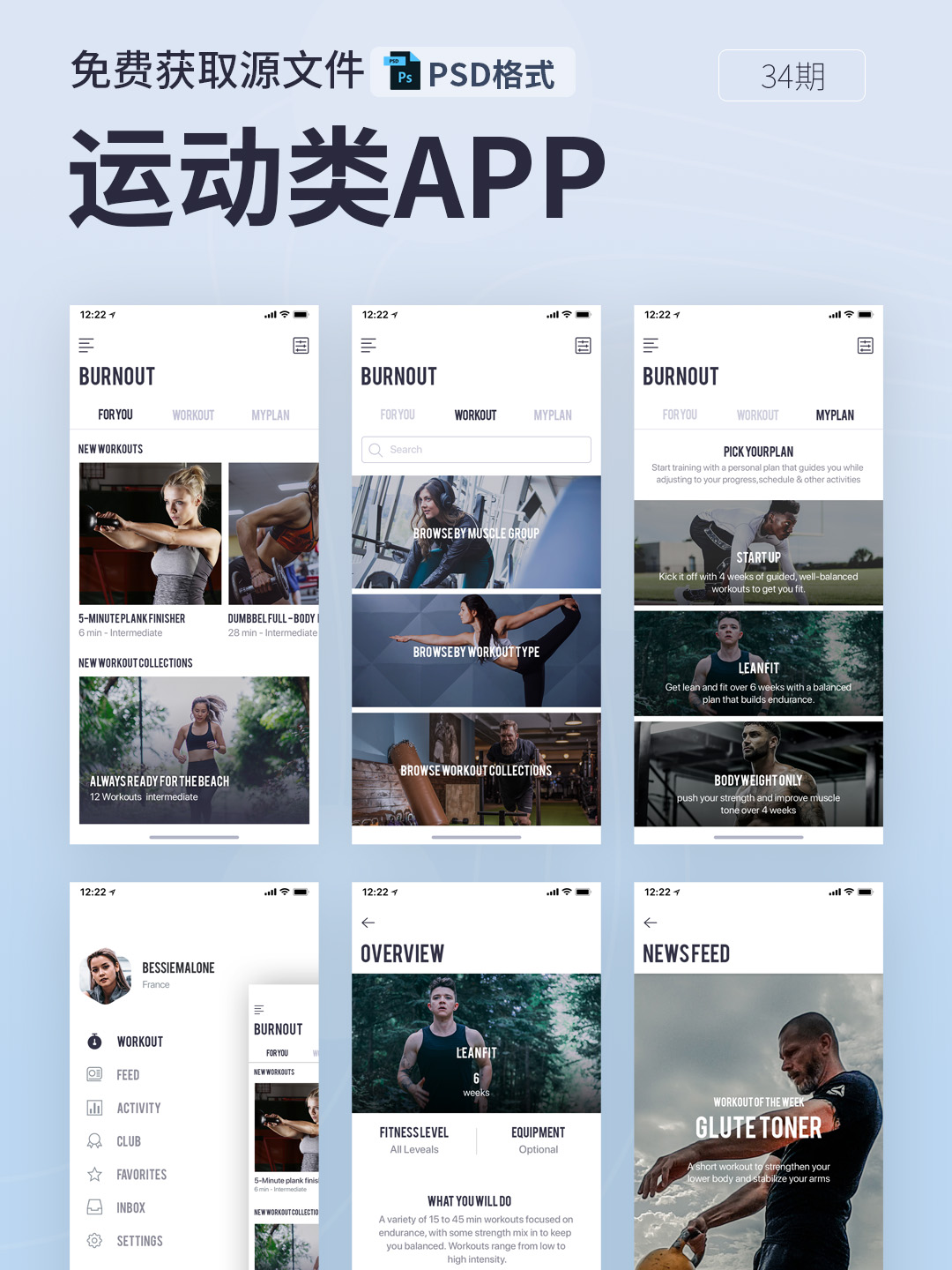 运动类APP界面设计源文件,包含11个源文件分层,可以PS编辑(为PSD格式)!