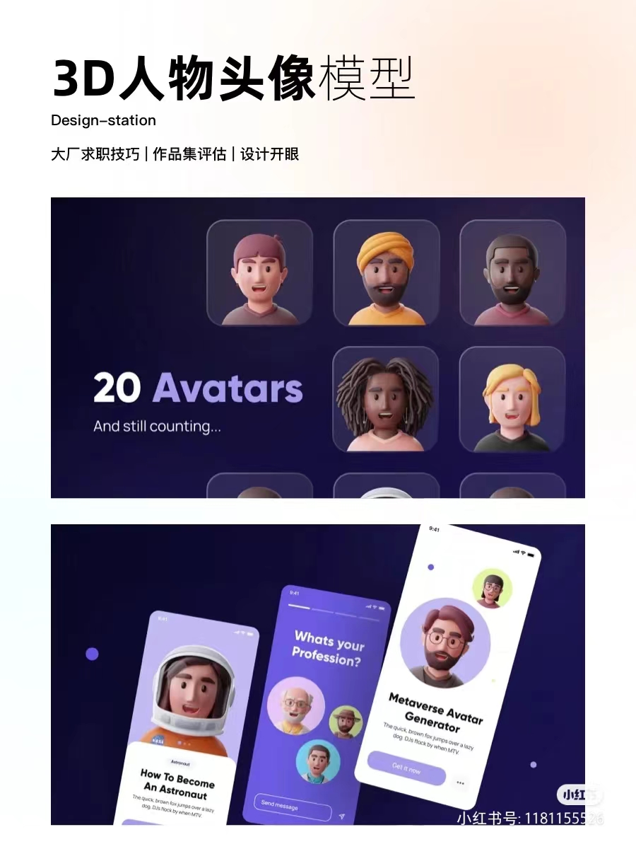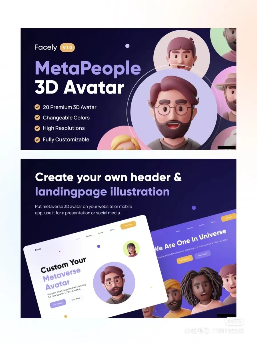一套适用于Metaverse/MetaPeople 配置文件的自定义 3D Avatar。使用 3D 图标让您的下一个产品和项目更加精彩。