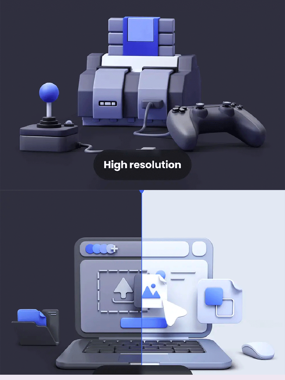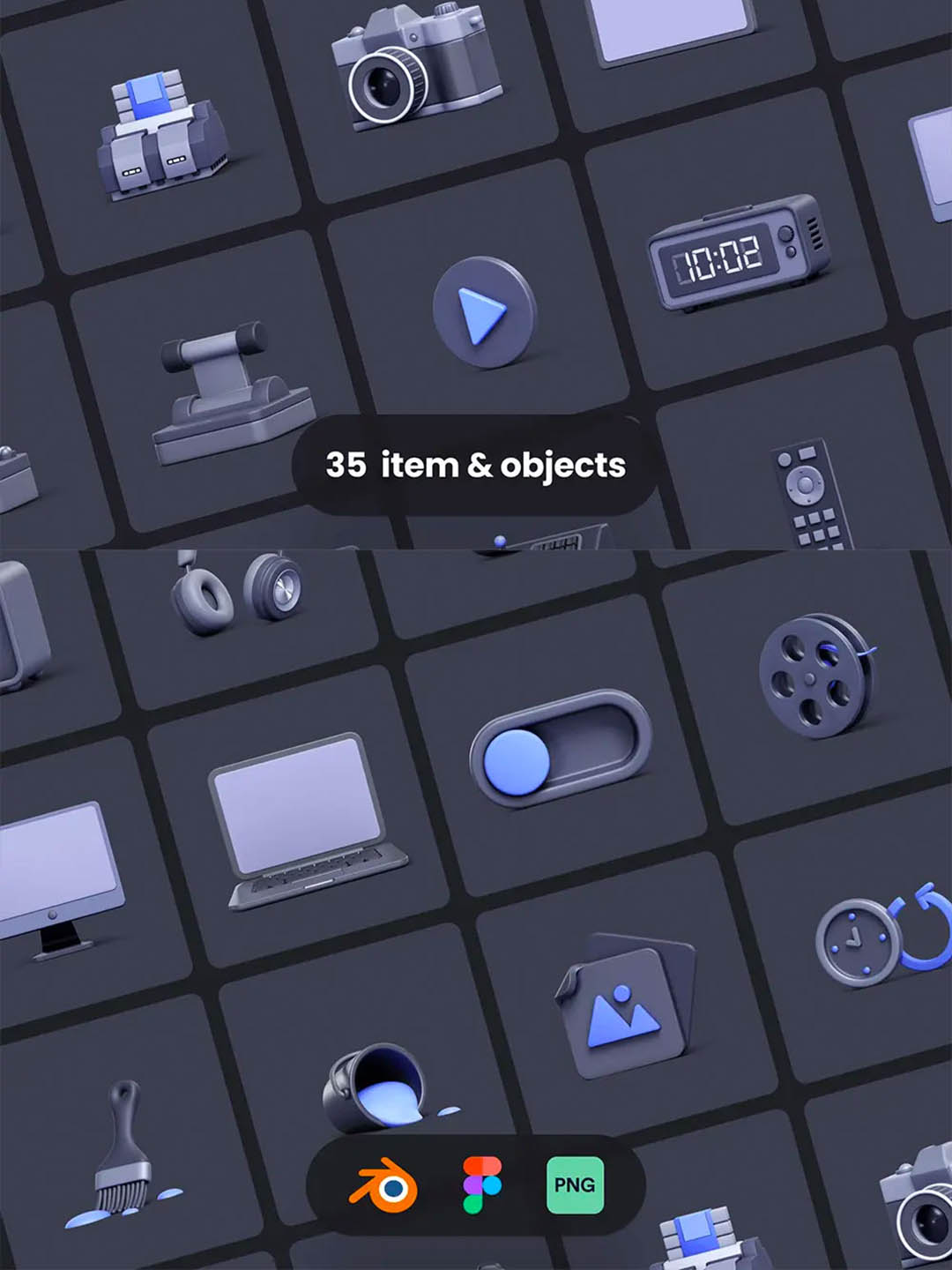 一套电子产品相关的科技感3D元素组件+小场景blender源文件