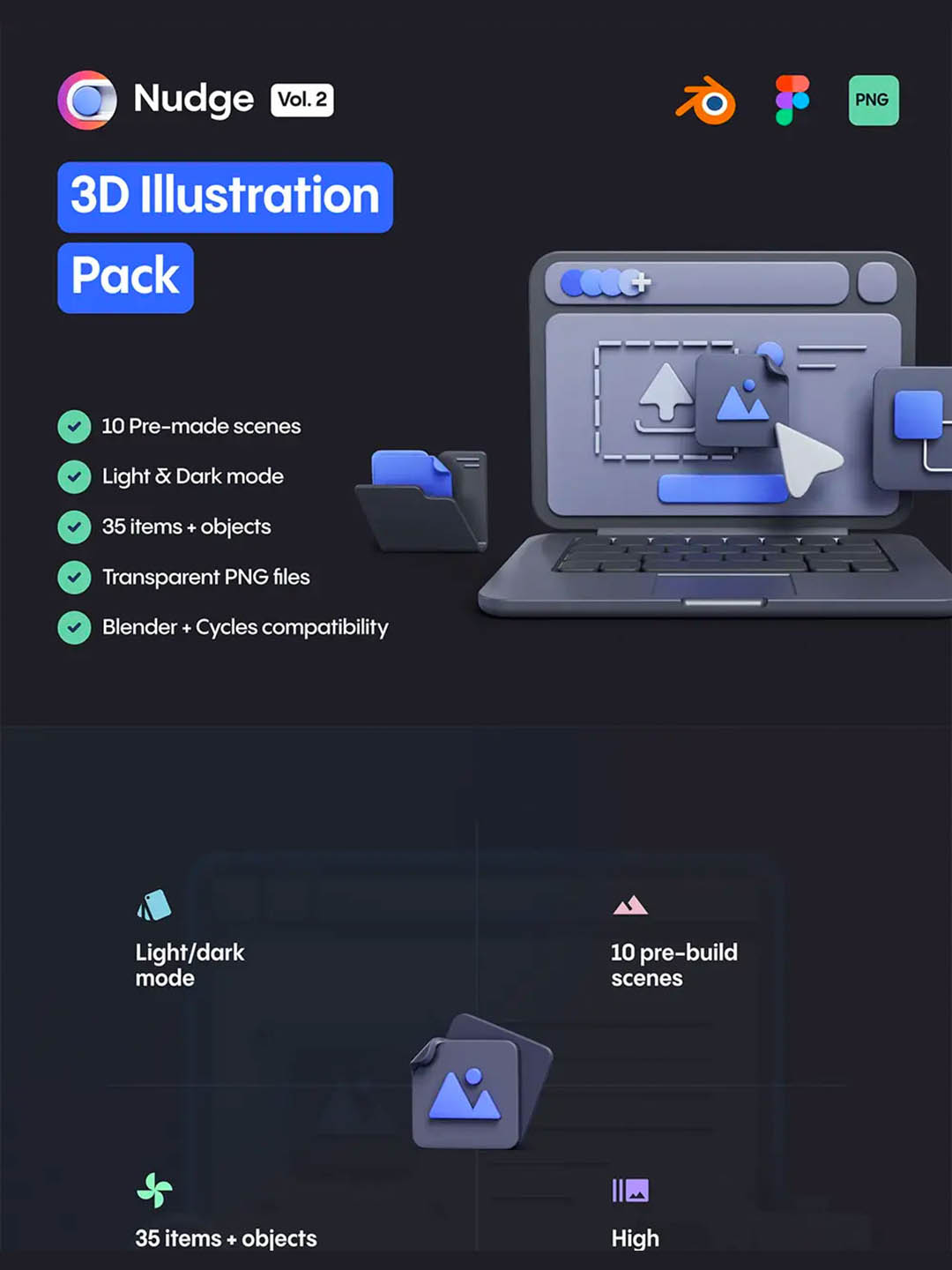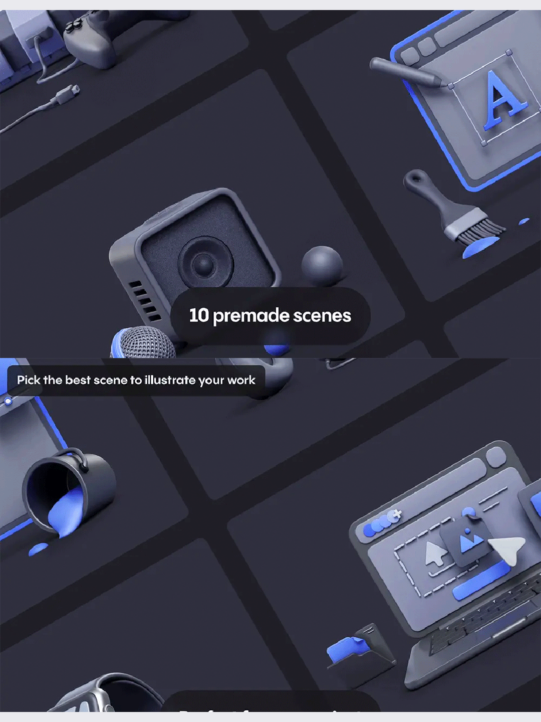 这个很棒的压缩包包括 10 个明暗模式的预制场景。