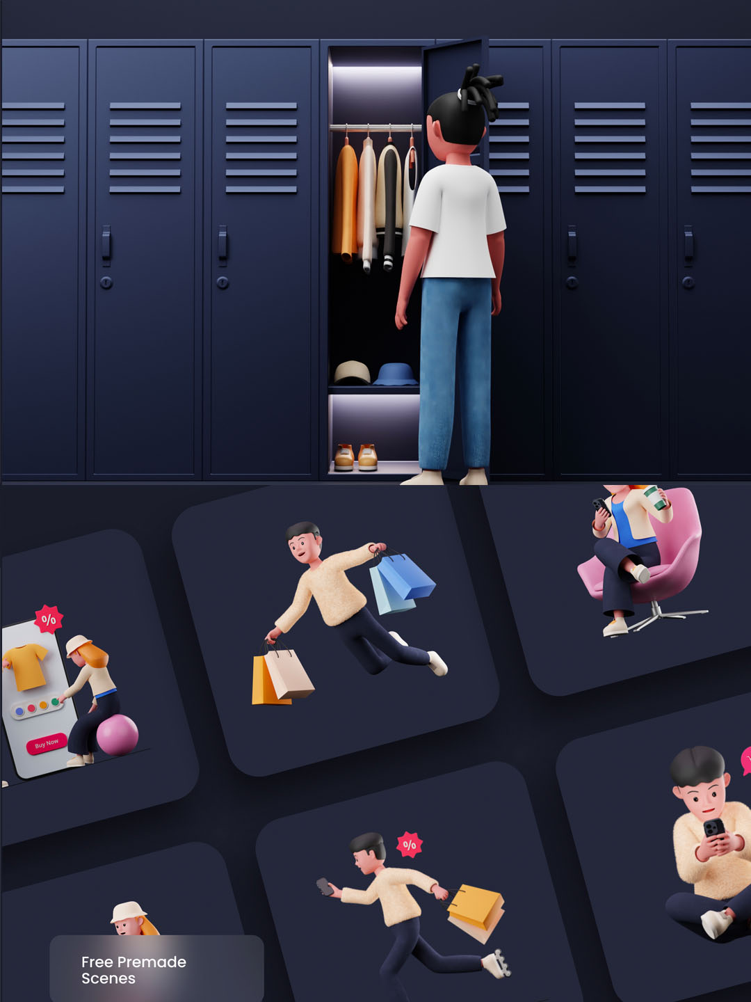 这个包还包括奖励场景和从blend文件中解锁女性角色。非常适合完成您的网站、APP和PPT。该软件包附带 200 多个 PNG 文件、Blender 文件和教程视频。