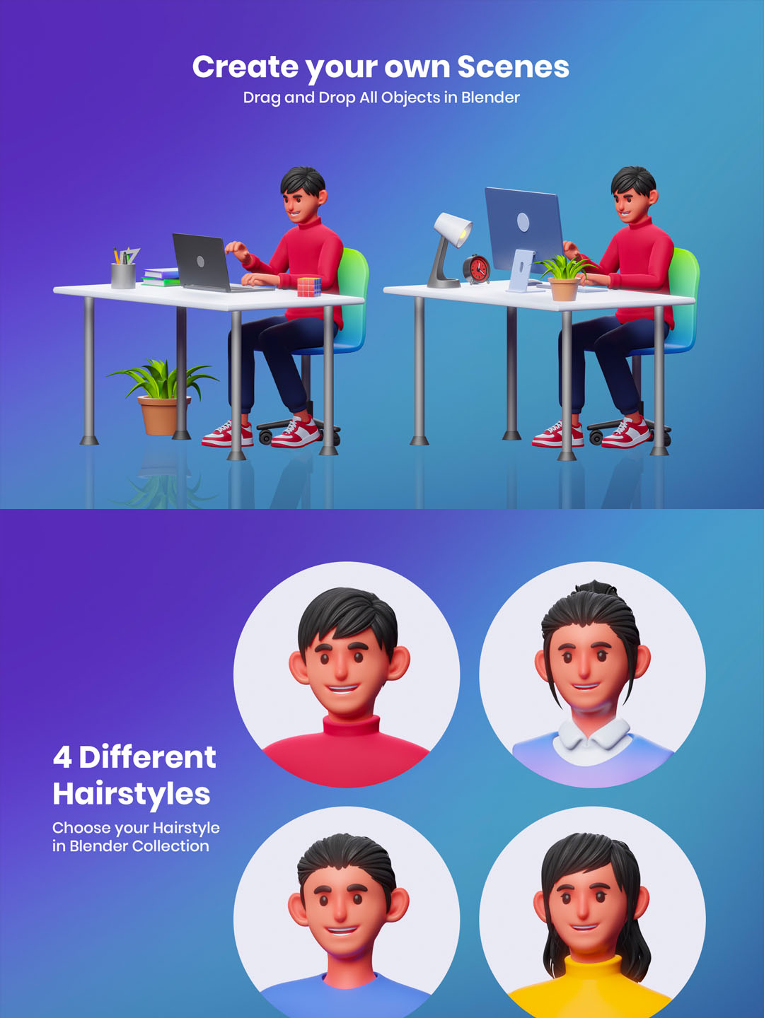 一套商务办公活动场景人物角色3D运营组件库blend源文件下载