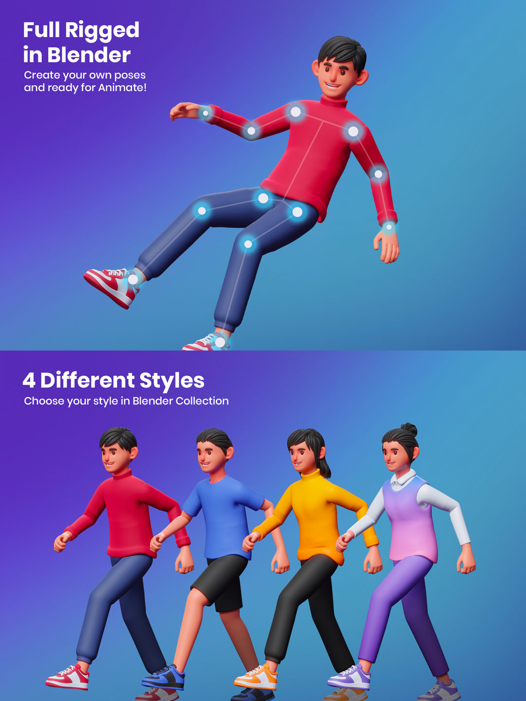 这个包包括一个完整的 3D 模型。您可以更改样式、发型、姿势和材料。